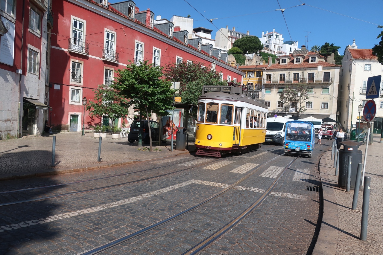 リスボン市内の各地を走っている路面電車(トラム)はリスボン観光でお薦めです、狭い路地を走り、急坂を登り降りする小さな車両はリスボンならでは。24時間チケットを持っていれば、路線を気にせず、とりあえず来た電車に乗り込んでみて少し行ってみるという楽しみ方があります。