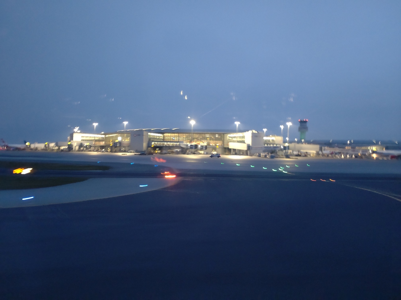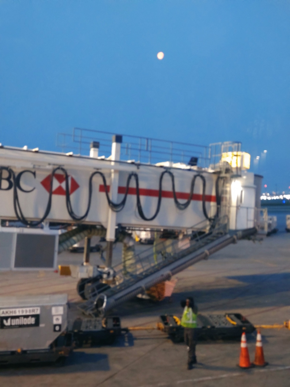 国内線で夜明け前のトロントに到着。西の空には満月が見えていました。乗客は大勢いましたが、その