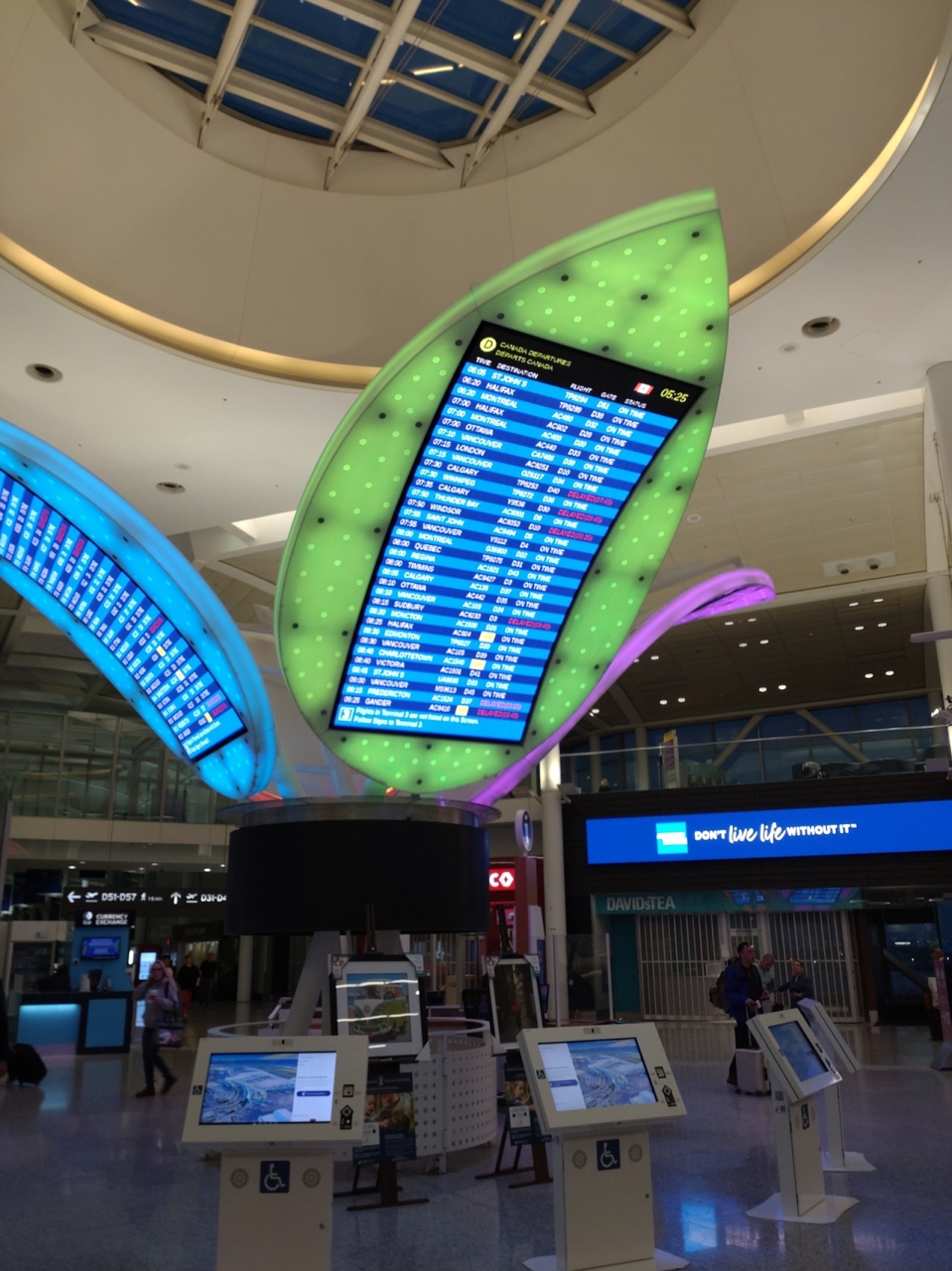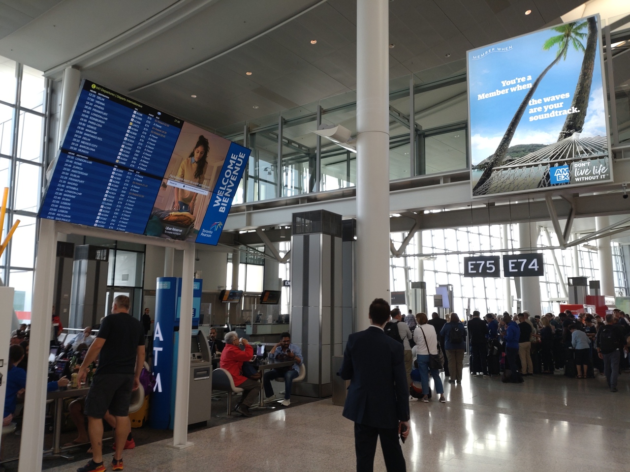 ほとんどはチェックインバゲージがなく、ターンテーブルはがらがら。施設が大きいので静寂な印象です。トロントからの出国は夕方でそれなりに人が多かったですが、空港のキャパが大きいのと、カナダは出国審査がないのとで混雑はありませんでした。