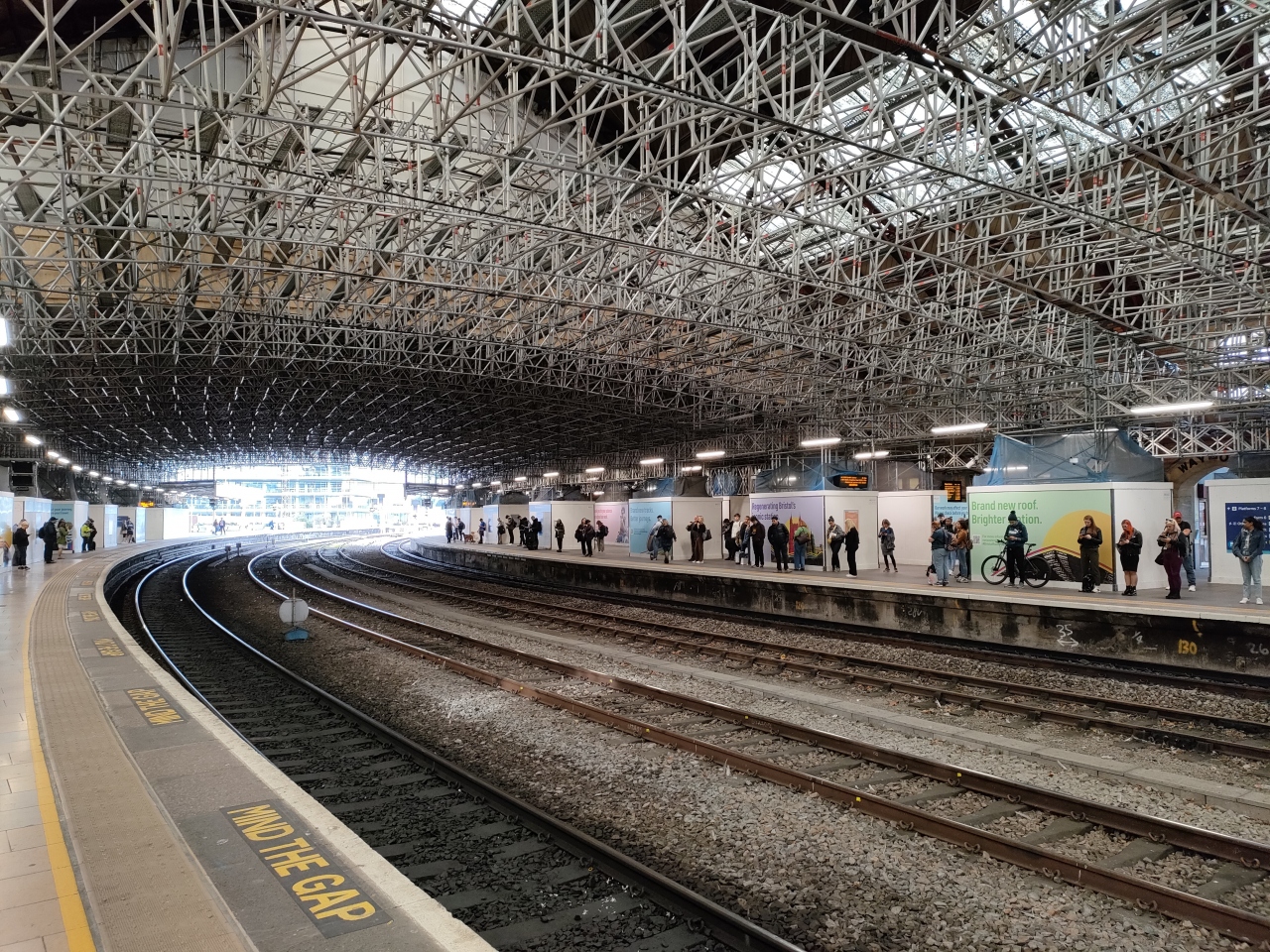 今回は乗り換え駅として利用。2023年5月現在、屋根を工事中でした。