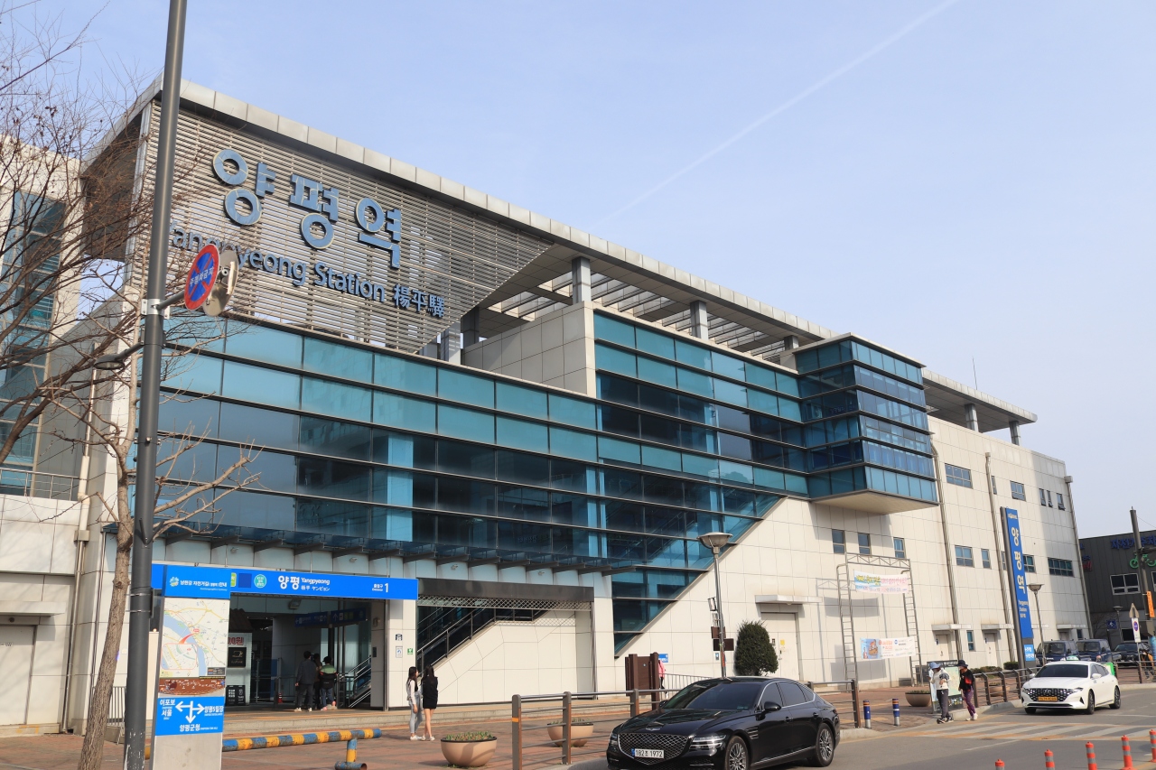 中央線の主要駅で一部のKTXも停車します。橋上駅となっており、構内は広く、4本のホームが並んでいました。出口を出て駅前の道路を進むと10分ほどで漢江にぶつかりました。楊平の街のエリアは広くありません。