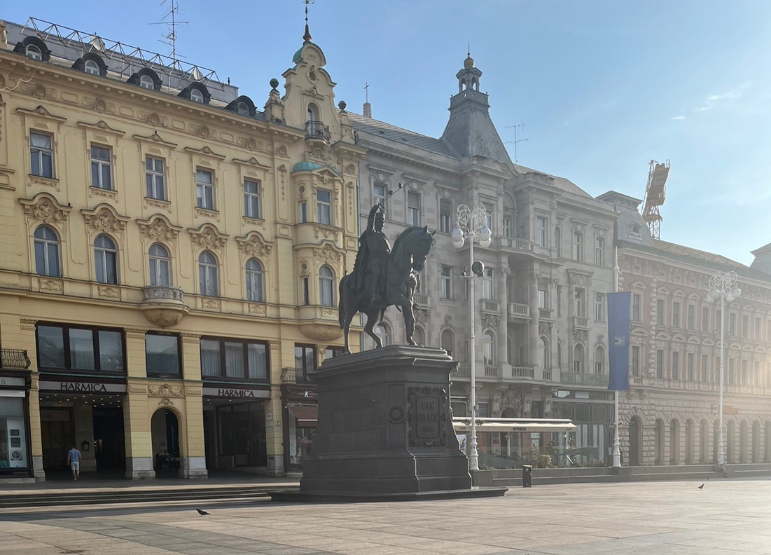 ザグレブ空港からバスとトラムに乗って中心地へ来たときに、トラムを降りた場所にあったのがイェラチッチ広場です。カラフルな建物と、イエラチッチ提督の騎馬像のある広場でザグレブに来たなと感じさせる広場でした。トラムの乗り場もすぐ近くなのでザグレブ観光で必ず立ち寄る場所だと思います。