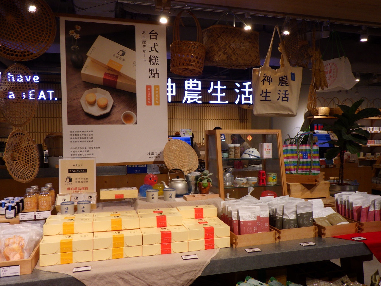 4Fにある台湾の食品と雑貨のショップ「神農生活」へ。パッケージがオシャレで陳列もキレイ、見ているだけでワクワク。お茶、調味料、お菓子、食材、雑貨がいっぱいです。円安の影響もあり、お値段高めに感じました。