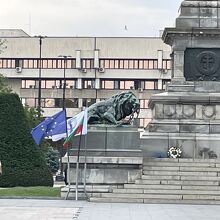 塔の下にはブルガリアの象徴であるライオンが2頭いて、そのうち1頭は鎖をかみちぎっています。ひときわ目立つのですぐにわかります。