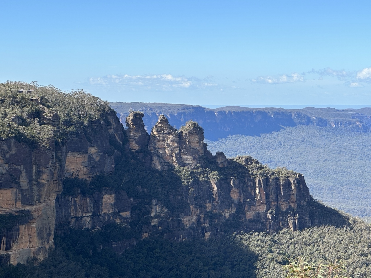 スリーシスターズの3つ並ぶ奇岩をはじめ、雄大な景観が広がるブルーマウンテンズ国立公園は、27万ヘクタールの広大なもの。展望スポットはいくつもありますが、一番のお薦めはカトゥーンバの街にあるエコーポイントです。崖に突き出すように造られた展望台からは、スリーシスターズの奇岩を間近に見ることができます。