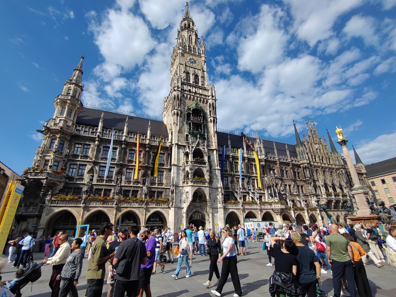 旅の最後にミュンヘンで一泊することになり、夕方2時間だけ観光できそうだったので、迷わずここに来ました。相変わらず人は多かったですが、数年前に訪れて見覚えのある風景に懐かしさが蘇りました。市庁舎の壁のザラザラした手触り感を記憶に残してあります。