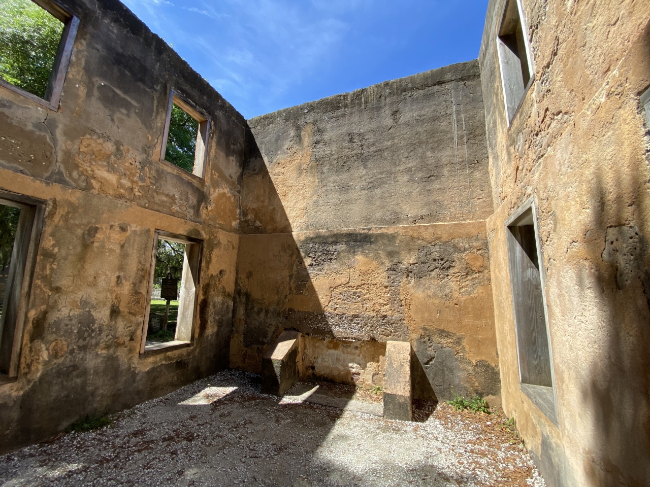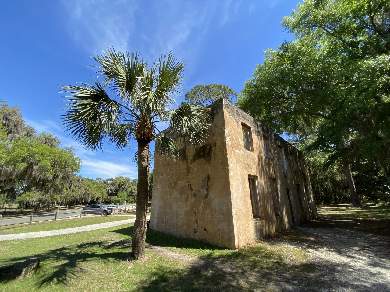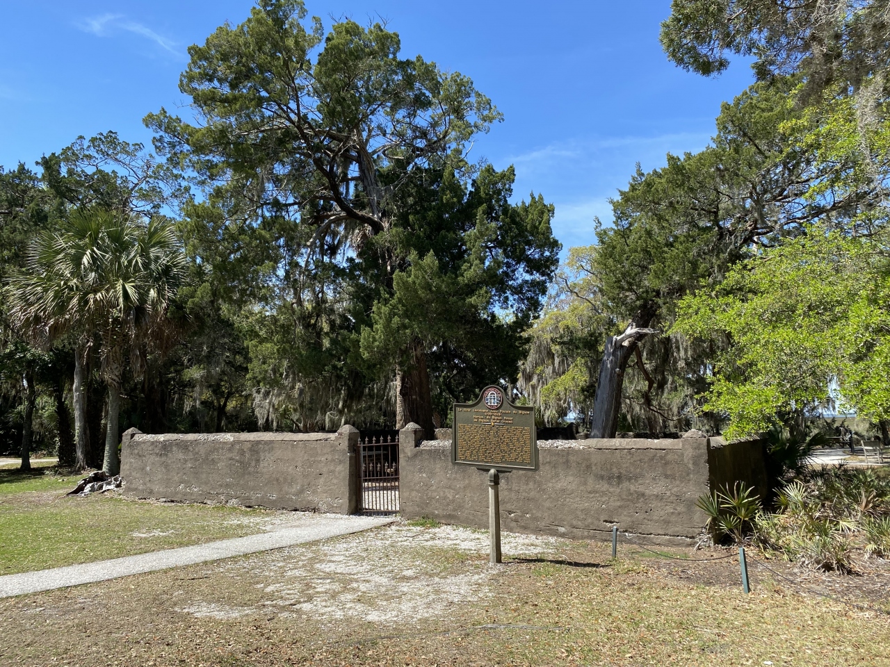 もう少しで島の北端というところの道路沿いに「ホートン・ハウス(Horton House)」があります。1743年にジェームズ・オグルソープ将軍の最高軍事補佐官だった、ウィリアム・ホートン少佐によって建てられた家とのこと。ホートン・ハウスと道を挟んで向かいにあるのが「デュビニョン墓地」。先述のこの島のクラブ創始者だったデュビニョンの家系の墓のようです。ヨーロッパ人が遠い地のアメリカに入植し、軍人が祖国の植民地争いのために生きた痕跡がぽつんと残る、少し哀愁漂う場所です。