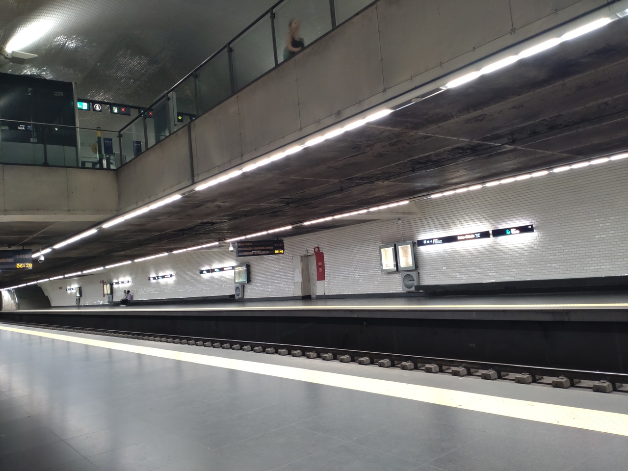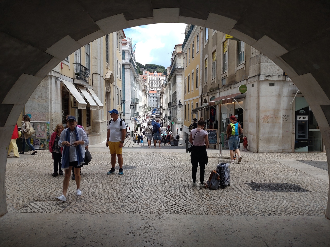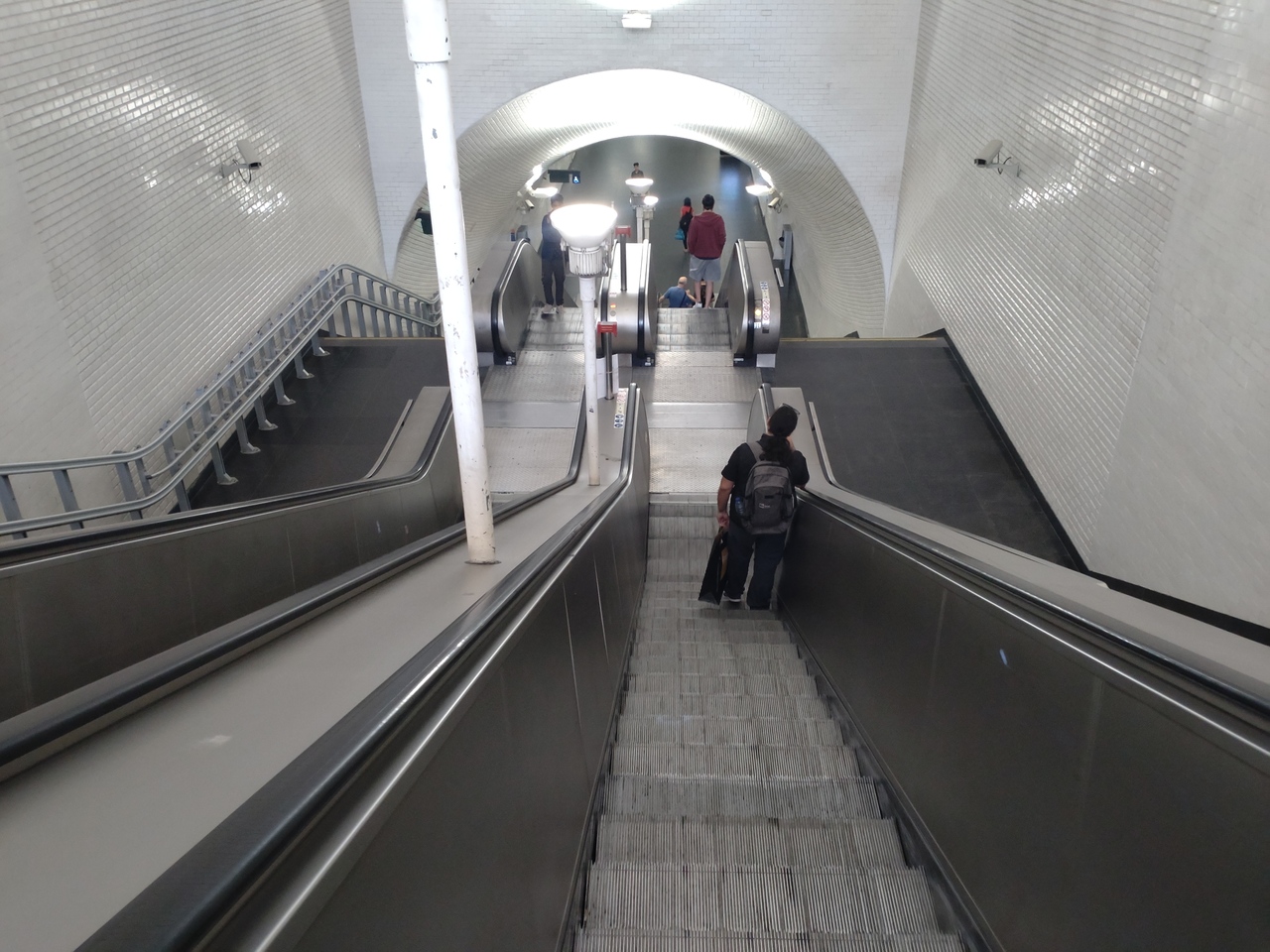 リスボン中心部の観光で最も便利なメトロ駅です。乗り場は谷底にあり、西側は急な斜面が続いています。坂の上にかる西側の出入口から乗り場まで長いエスカレーターがありますが、下りはメンテナンス中でした。上りがメンテナンス中だったら一般的なお寺の石段より遥かに長いのでちょっとした登山になると思います。
