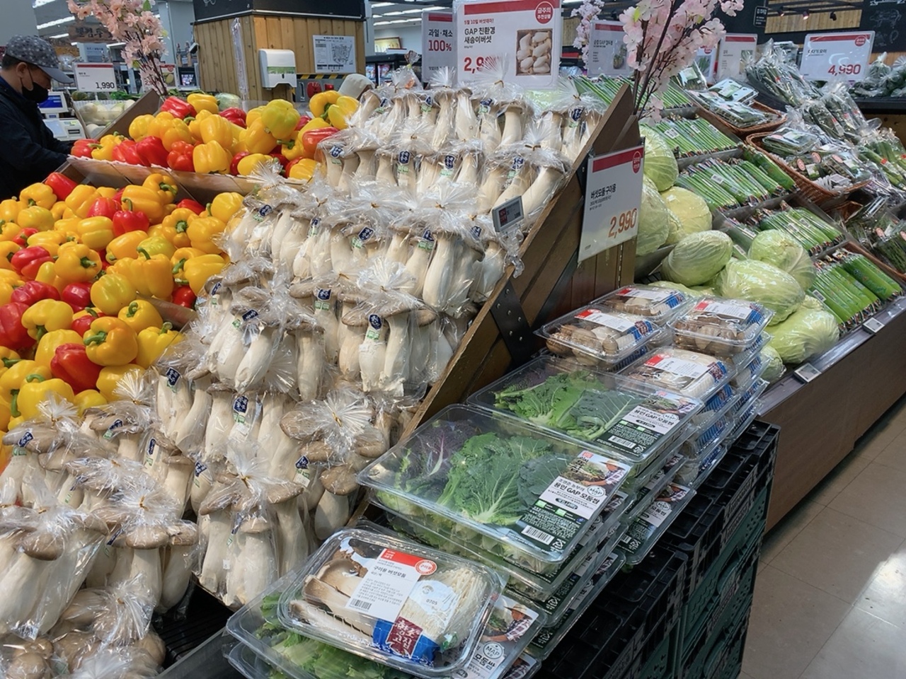 GW旅行でヨーロッパに行った時、仁川経由で行ったのですが、帰りの日本へのフライトの乗り継ぎ時間が数時間あり、ソウル市内にお買い物に行くにはちょっと時間が足りなかったのでロッテマートに行きました。 雲西駅を降りるとビルが見える、駅前のショッピングセンターです。 1Fはフツーのスーパーで、売ってる物も日本と変わらないというか、野菜など特に同じに感じました。