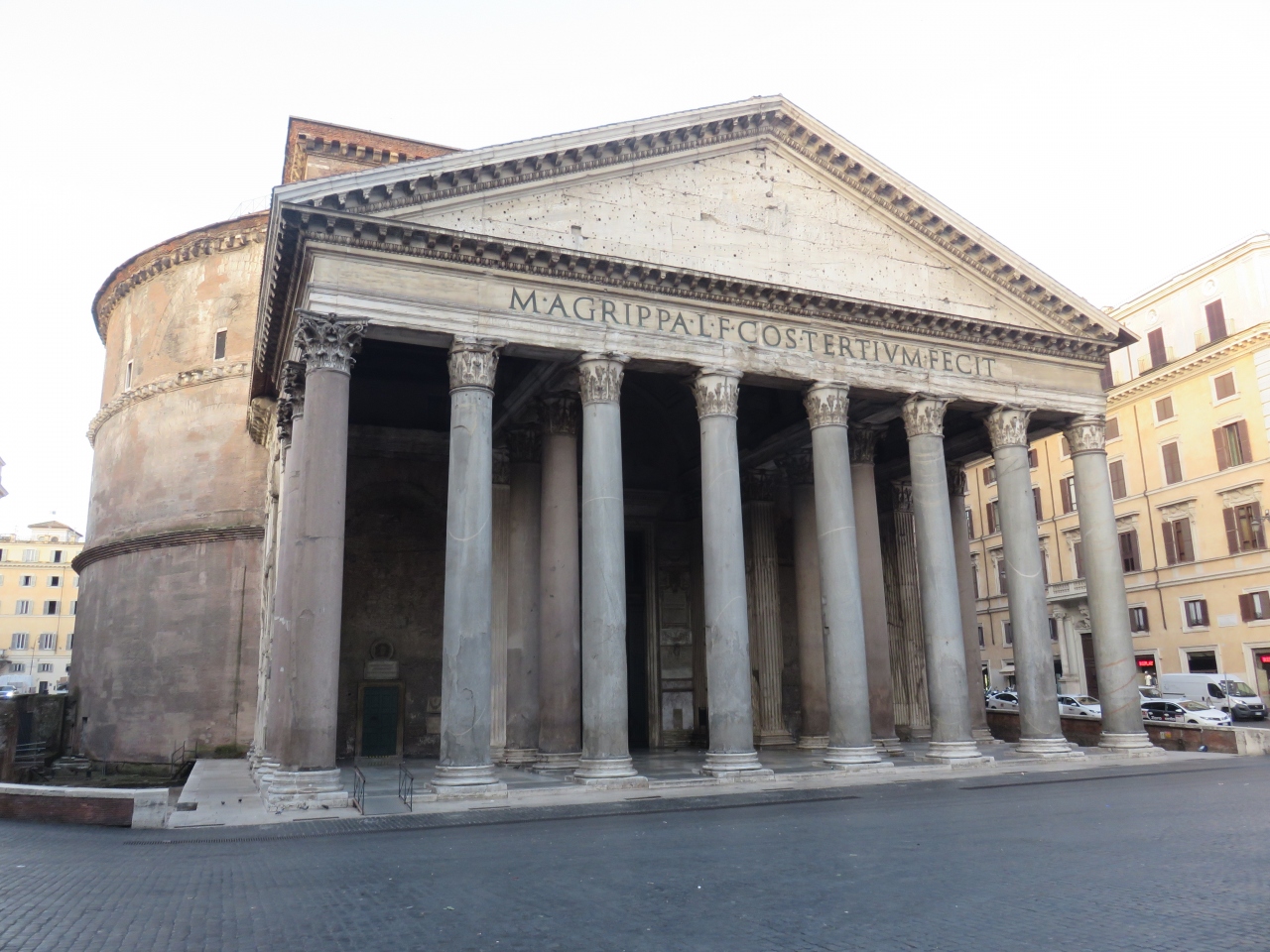 およそ2000年ほど前に建てられた古代ローマ建築の傑作で、石造りの建築としては世界最大とされる圧倒的なスケール感の建物です。古代ローマ時代の柱を構える入口と、円型の建物が特徴的だと感じました。