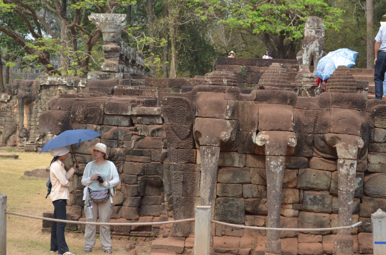アンコール遺跡の一角、象の巨像が並んでいます