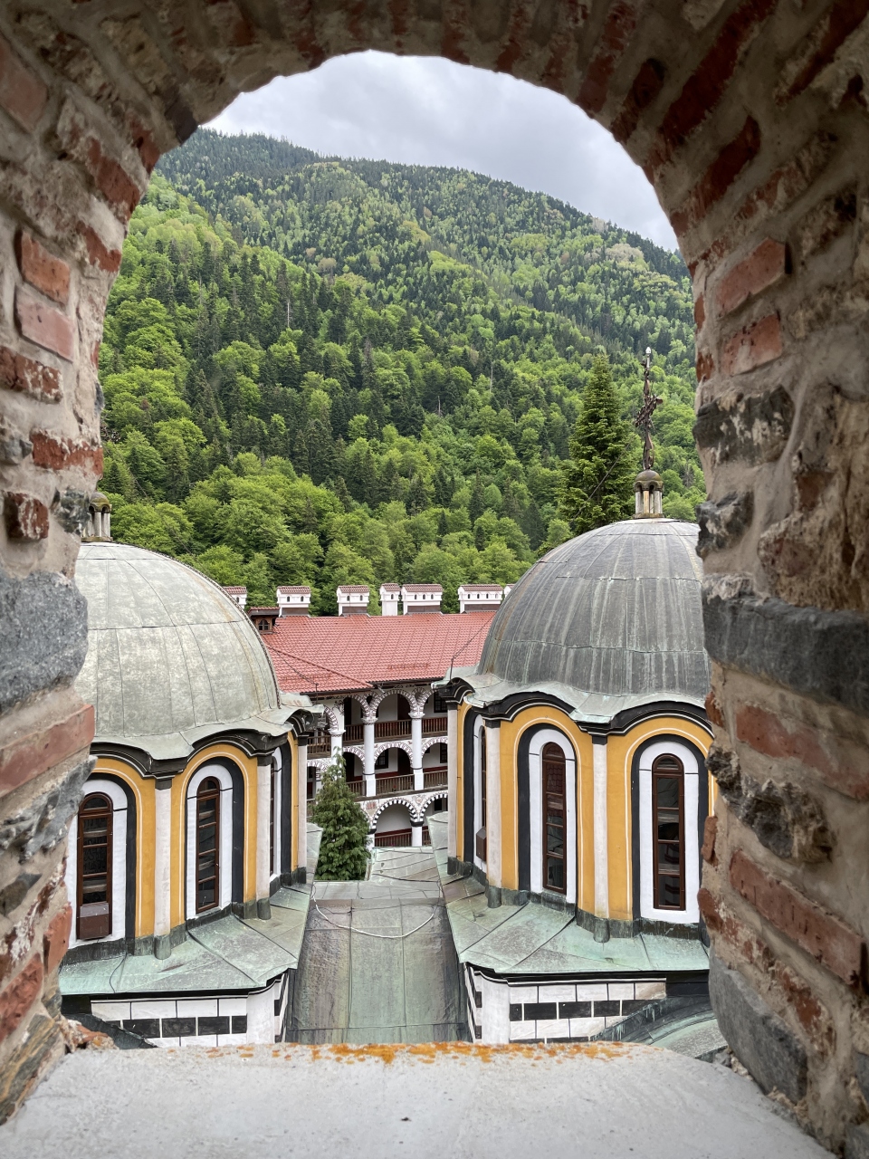 5レバで中に入って登ることが出来ました。外階段の後は蹴上の高い石段を登っていきます。すごく高くはありませんが、教会の丸いドームや僧院を上から眺められます。ブルガリア人のガイドさんも写真を撮っていました。