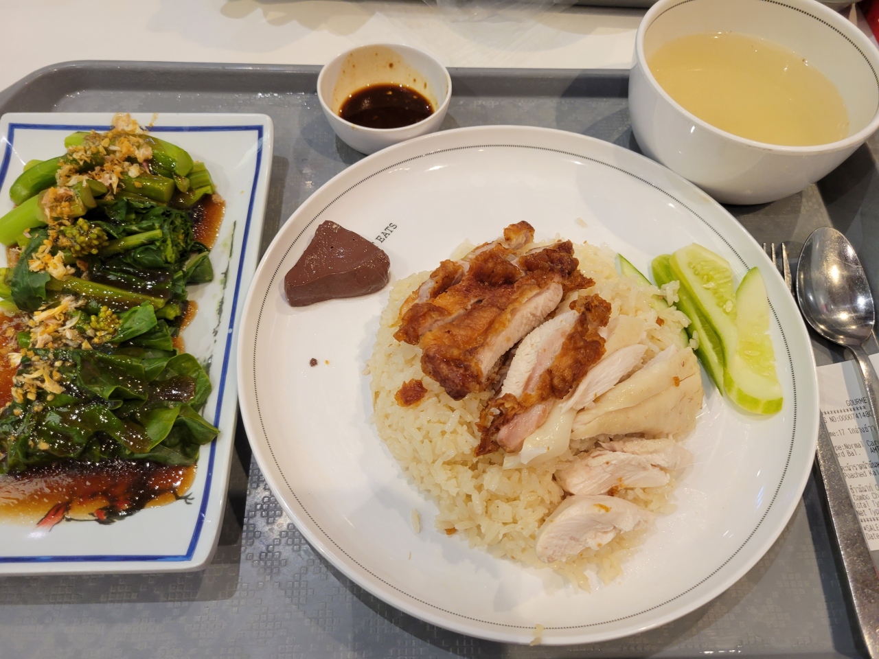 ゆで鶏と揚げ鶏のミックスカオマンガイ95THBに
