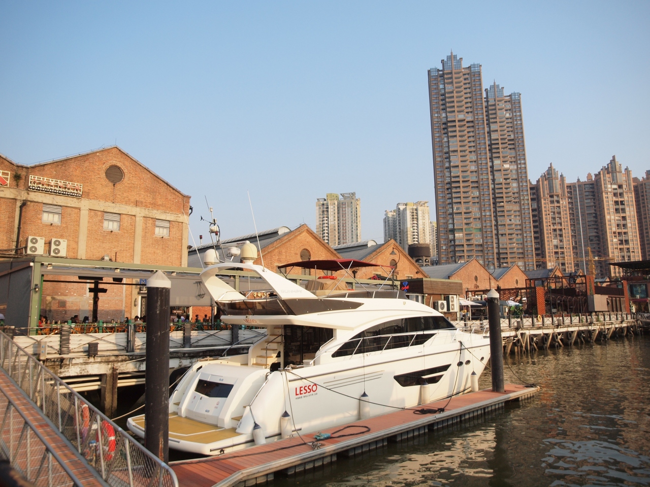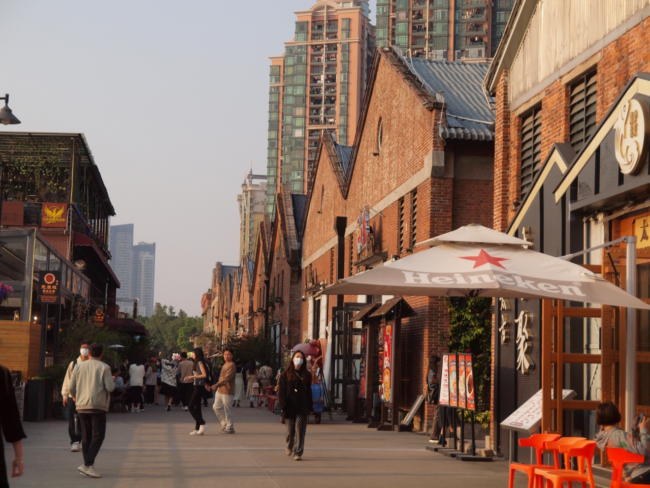 河沿いにレンガ倉庫を利用した飲食店が並んでいます。