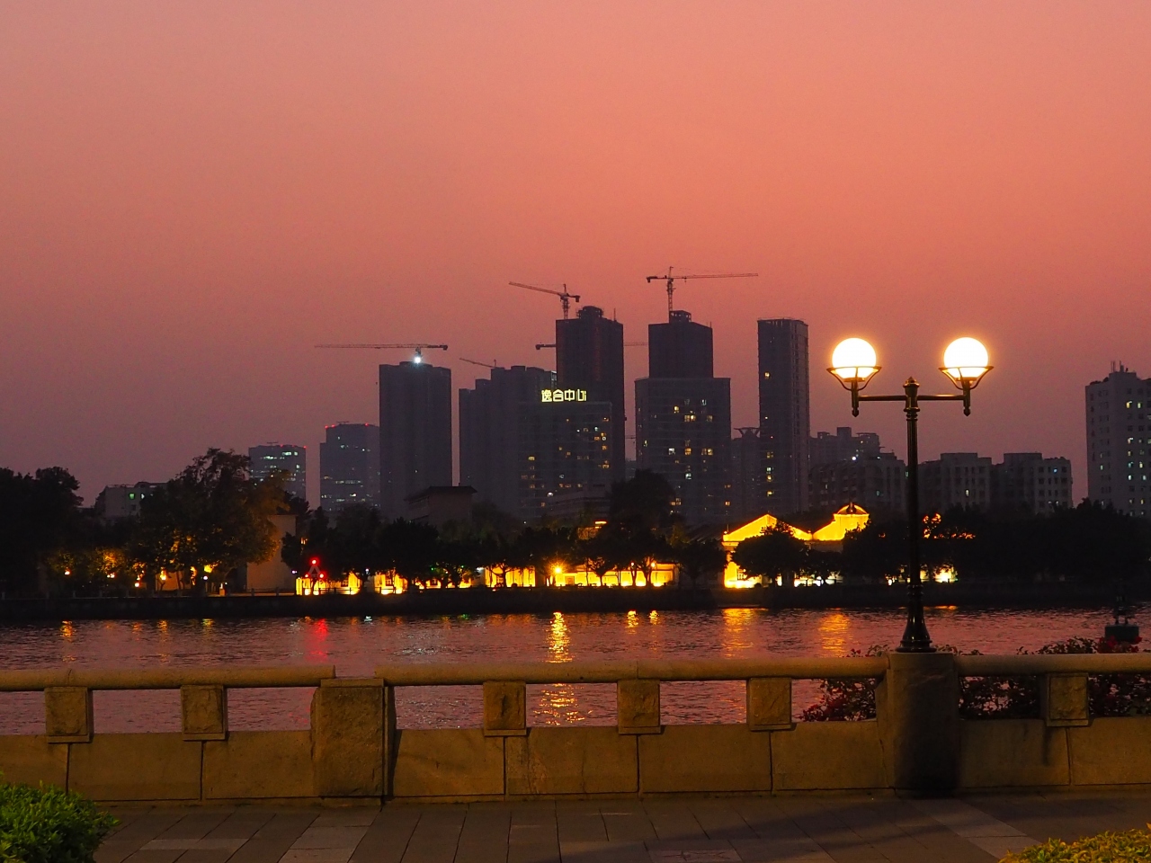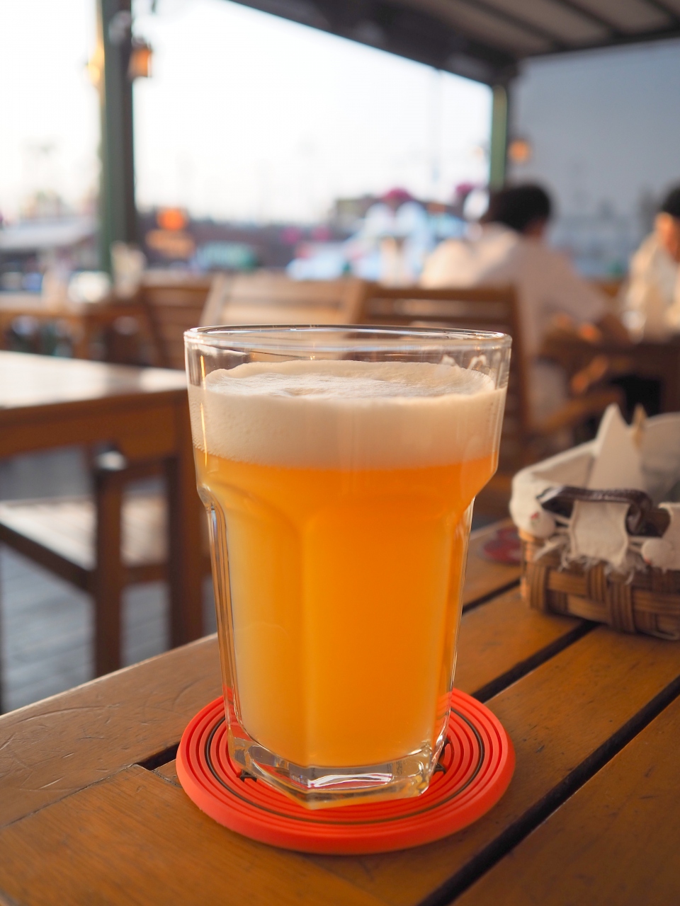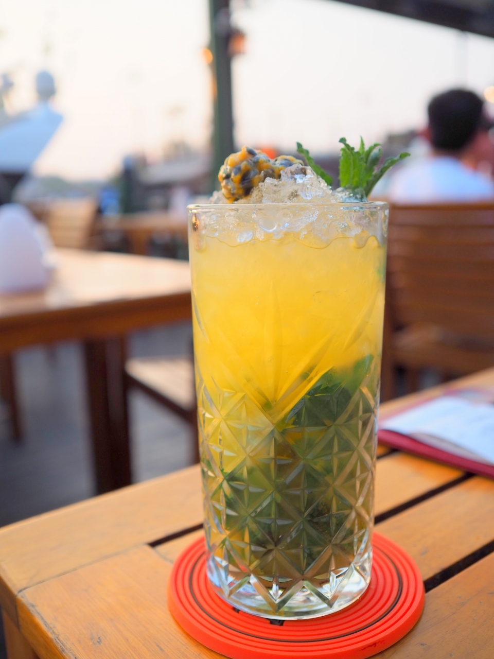 夕暮れの河沿いでビールやカクテルを楽しむことができました。