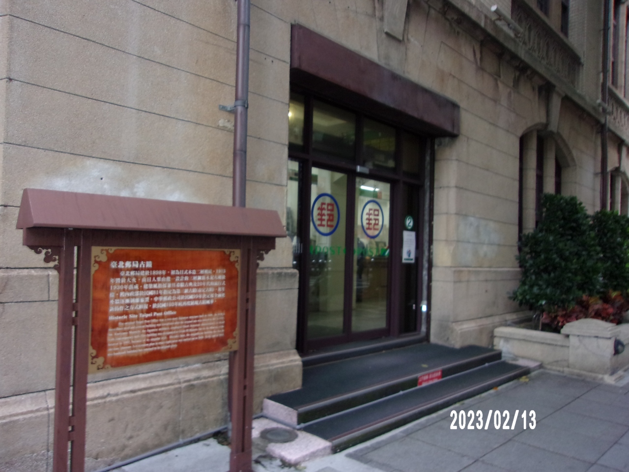 この台北郵局 (台北郵便局)は北門の道を挟んで南東のエリアにあります。地下鉄MRT台北駅から西に5分強の場所にあります。歴史邸な建物で電信局とつながっています。郵便局の建物の外観も歴史的な遺産です。入り口近くに古蹟の説明板があります。郵便協として台北市内で最大です。