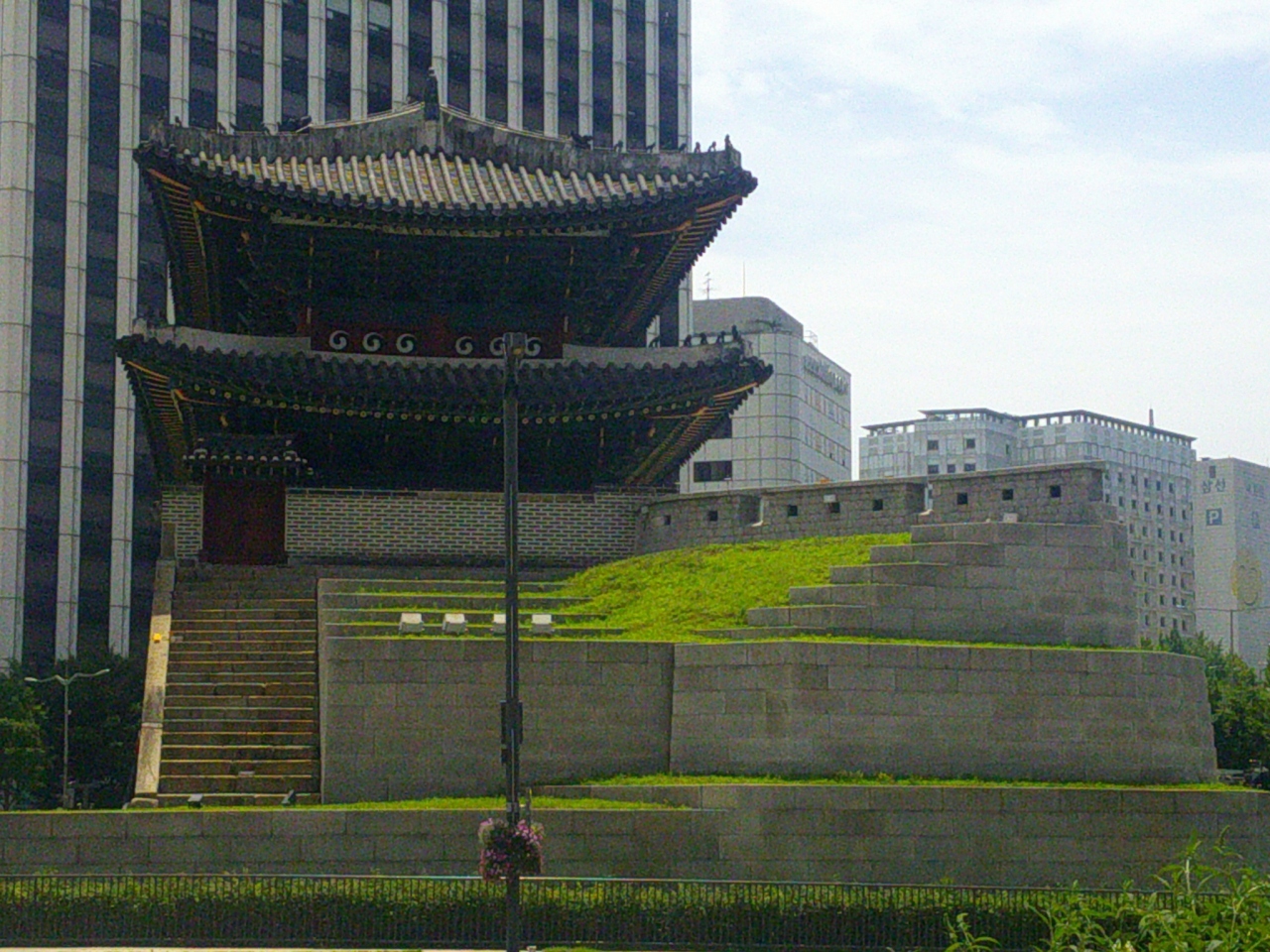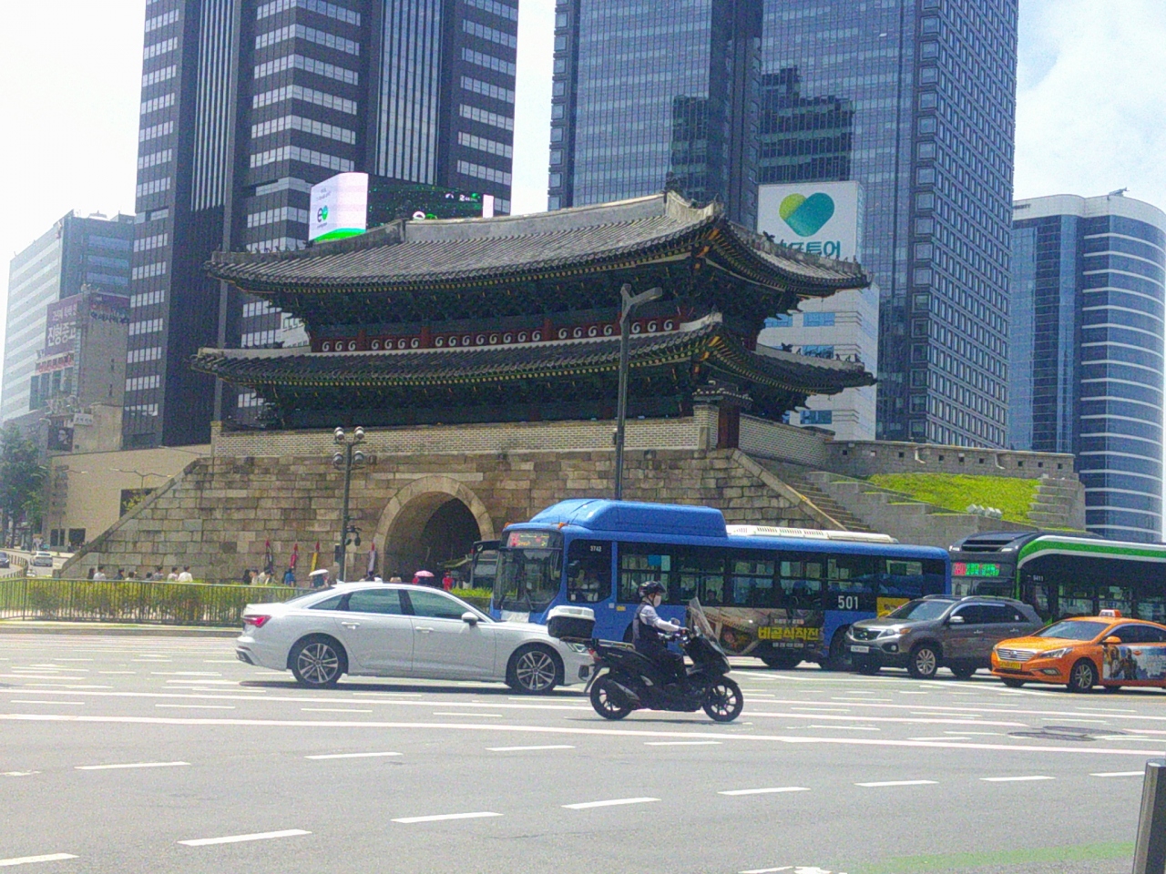 ただ、交通量が激しい時間帯は、通行車両に阻まれて、なかなか美しい写真を収めるのが困難ではありますが、それはそれで、現代ソウルらしさを垣間見ることができる門かなと思います。