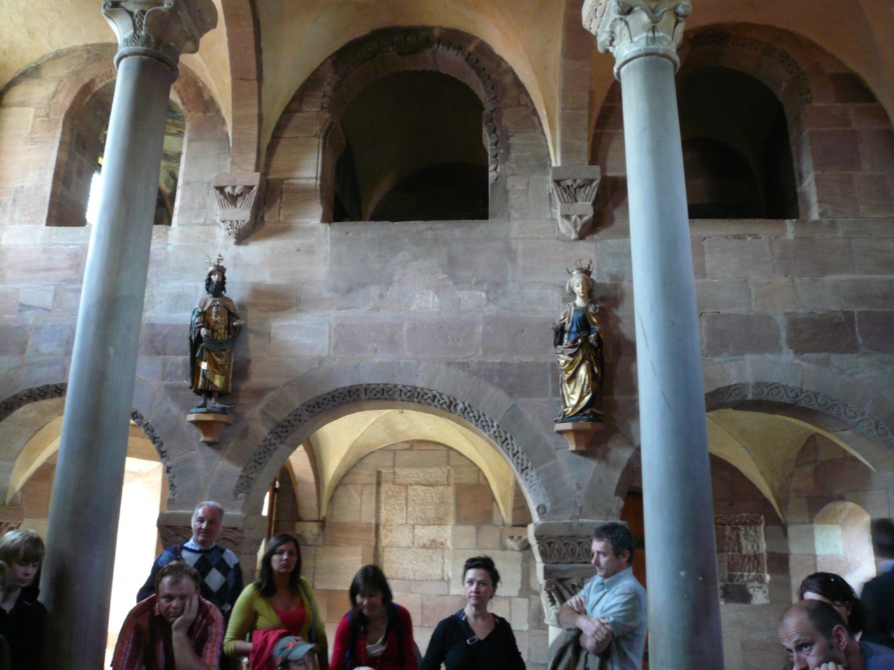 1200年頃、Hohenstaufenホーエンシュタウフェン朝に建てられた、ロマネスク様式の二重礼拝堂は身分に応じた礼拝ができるようにしたようで、当然上部は身分の高い者の為だ。二重礼拝堂の構造は其々が異なった形式で、皇帝一家には2階の西側に特別席が設けられていて、他と歴然とした差を示す。2階はきちんと装飾されているが、1階は砂岩の柱に模様が彫刻されているものの、荒削りのままである。