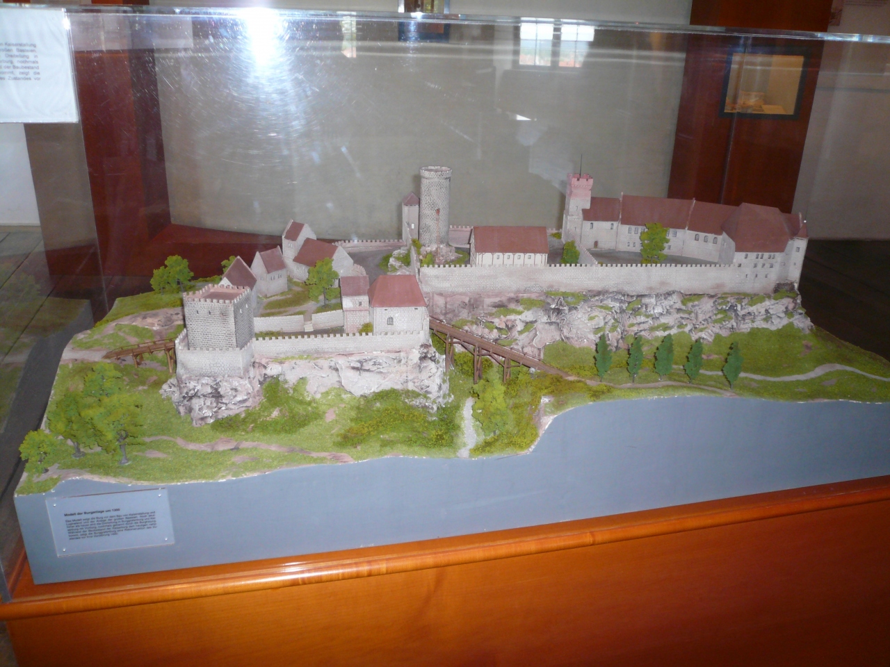 時間調整で最初にカイザーブルグ博物館に行く。ここには築城の歴史、武具などの展示がある。裏手にある公園 は深い堀と厚い城壁に囲まれていて、ここにもライラックが咲き、観光客は香り高い花に近づいて、香を嗅いでいる。ユースホステルになって城郭内の建物、町を一望する展望台を回った。眺望の良いSinwellturmジンベル塔があったが、改修中である。登れるらしいが・・・。