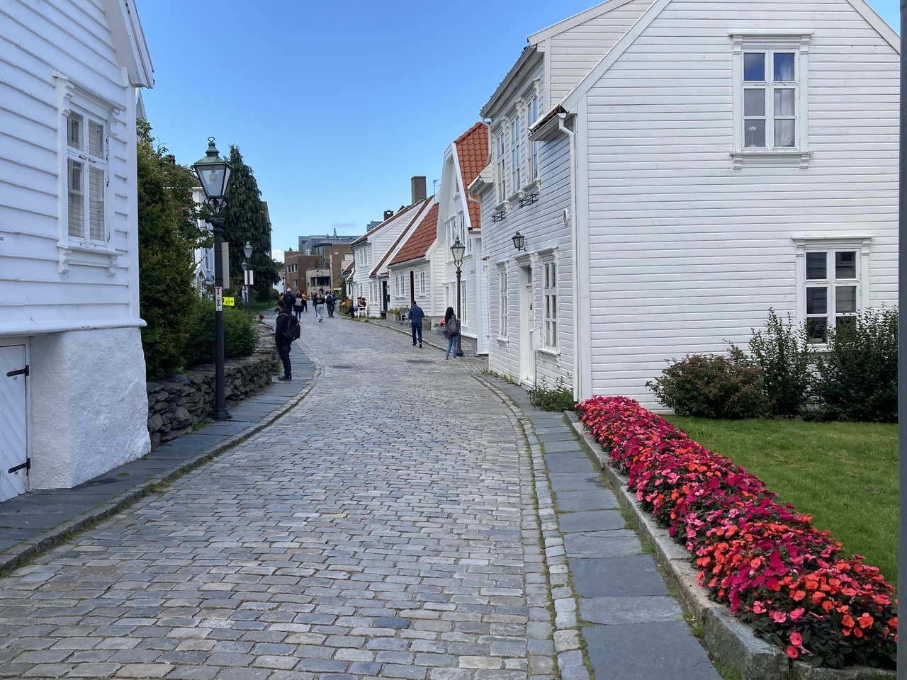 ノルウェー南西部に位置する港湾都市スタヴァンゲルの旧市街です。白色で統一された家々がきれいに並び、周りには色とりどりの花々が植えており街並みが良いです。市内中心部から徒歩5-10分でアクセスできる距離です。海側から行くと少し急な石畳を登りますがすぐに着きます。徒歩で最低30分もあれば全体を見れる規模感かと思います。