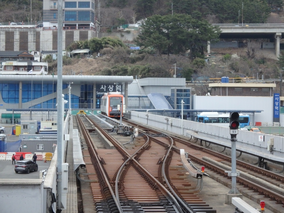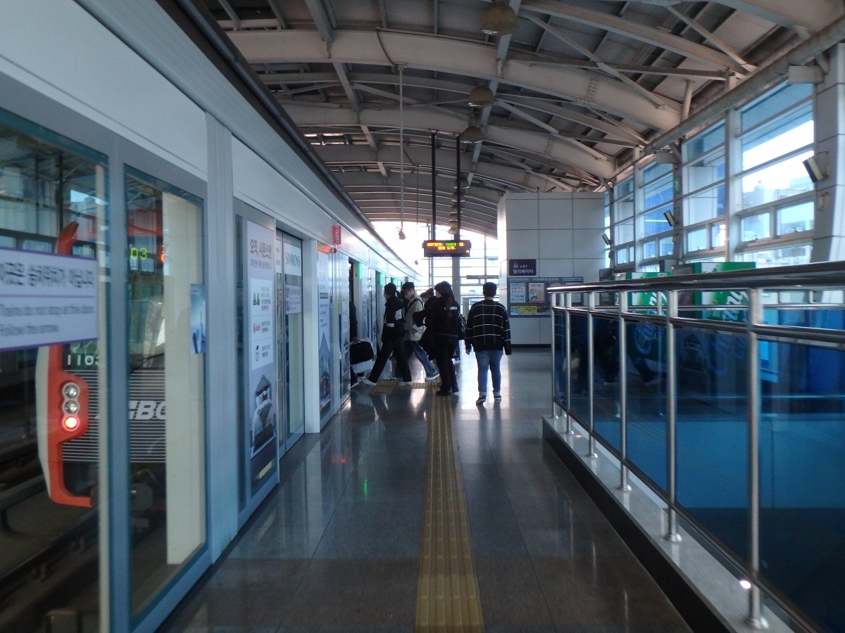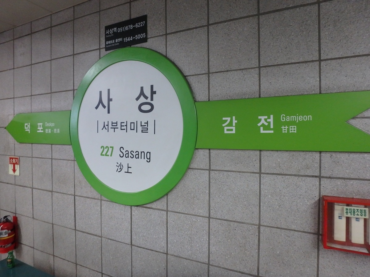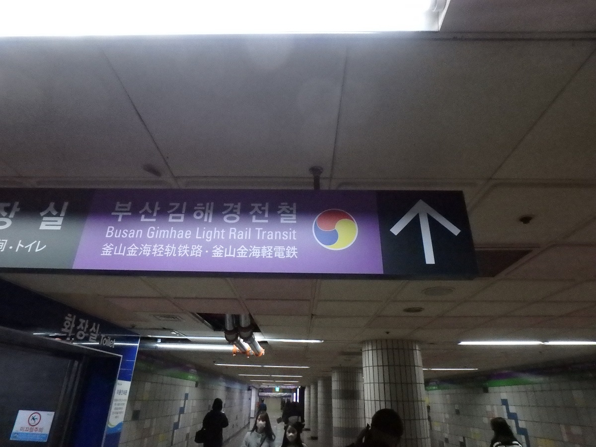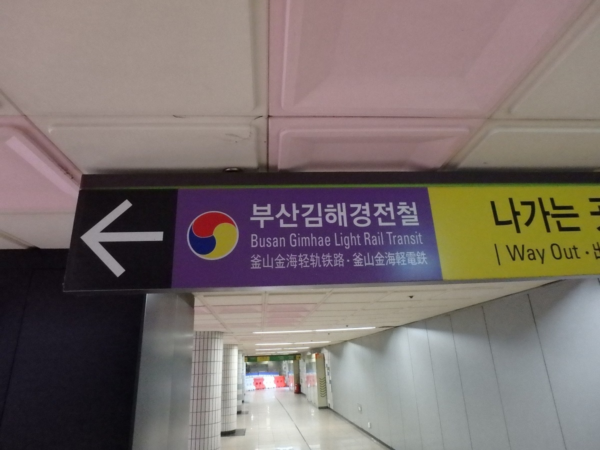 釜山の中心部から郊外にある金海国際空港へ鉄路で移動する際、地下鉄から金海軽電鉄に乗換える必要がある。その乗換えの駅が「沙上駅」だ。私は地下鉄から軽電鉄への乗換えとなったが、上りエスカレーターを乗り継いでいく感じで上へ上へ移動。至る所に案内板があったので迷うことなく乗換えすることができた。