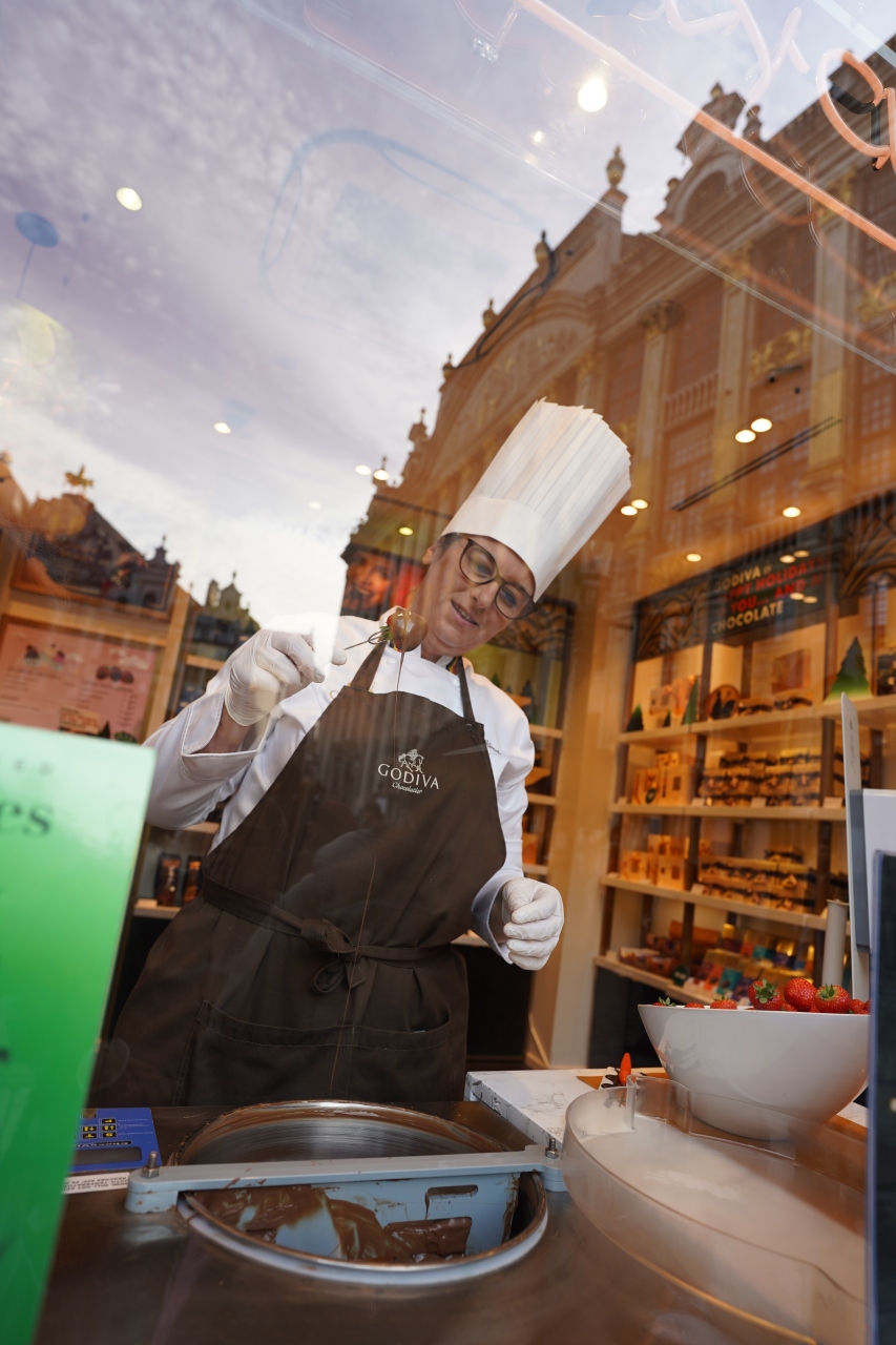 グランプラスに面したお店の並びにありました。トリュフ型の丸いチョコが180円くらいだったかな、日本の半値以下です。つまみ食いのために入ったつもりが、結局お土産を買い込むことに。自分で選んだものを6個入りとかの箱に詰めてもらう方式でした。