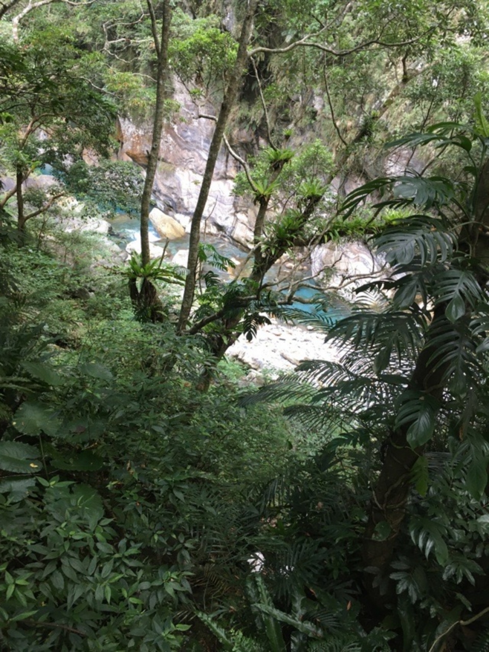 観光の名所にもなっています。深く刻まれた谷底に流れているエメラルドブルーとグリーンの中間色の川の水を見下ろしたとき、渓谷のぜっぺきを見上げた時、感動を覚えました。原住民の作ったソーセージが売られていました。