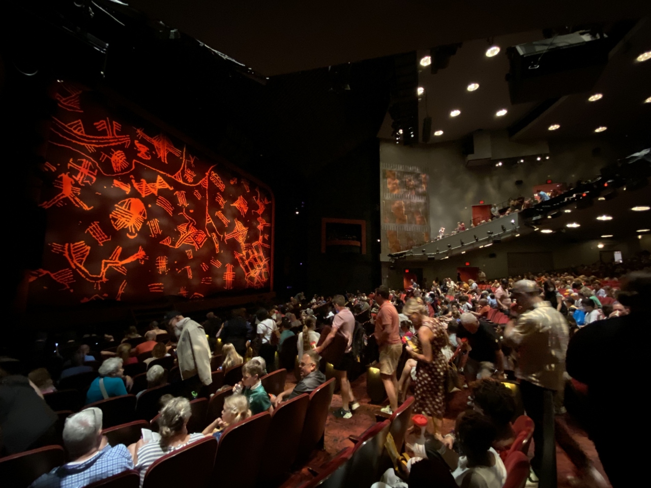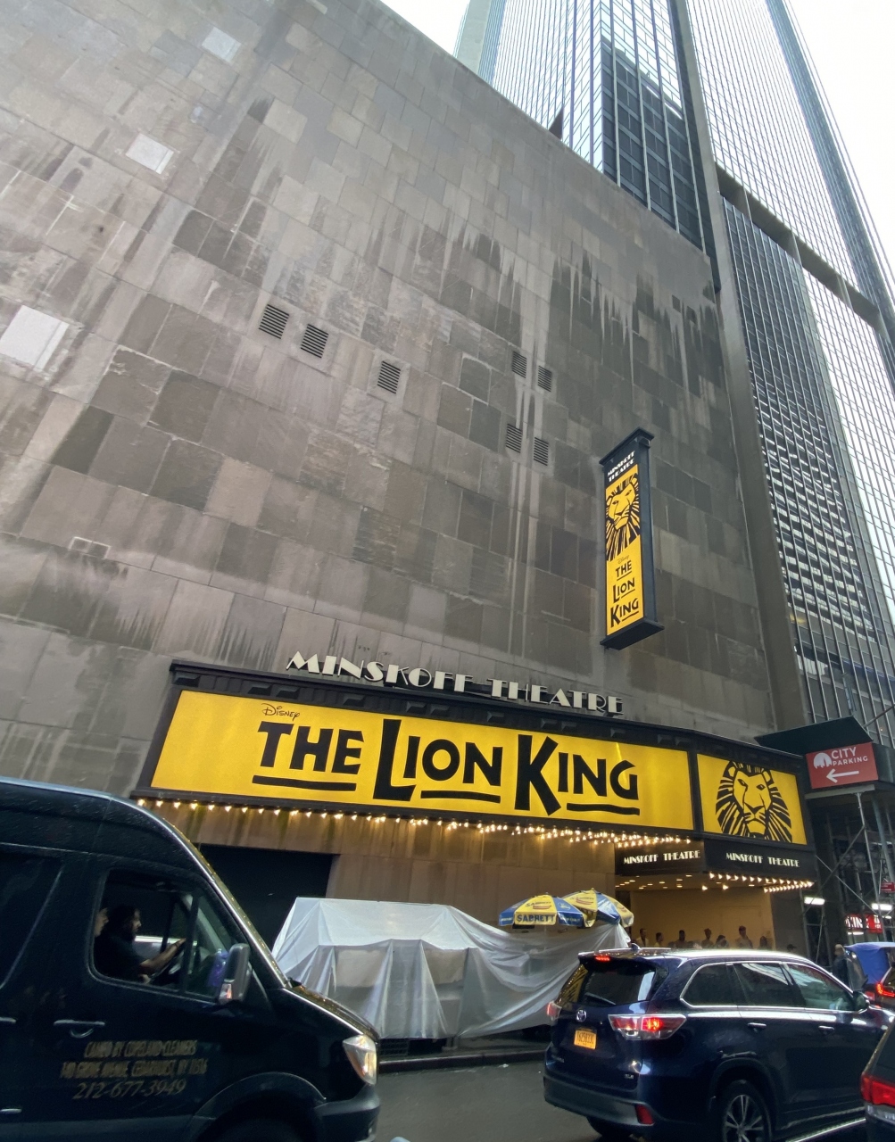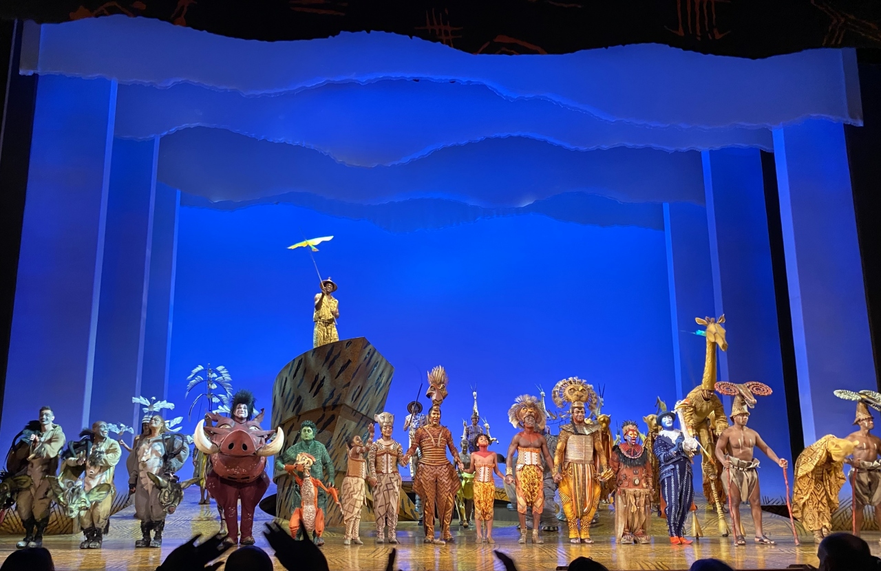「ミンスコフ劇場」にて「ライオン・キング (The Lion King) 」を観劇しました。ミュージカルをほとんど見たことが無い私たちなので、代表的な作品をまずは抑えておこうということで。ライオン・キングは、ディズニーによる1994年のアニメ映画ですが、それを基に1997年にミュージカルが製作され開演しました。この劇場で上演されるようになったのは2006年からで、ブロードウエイ・ミュージカルの中では歴代3番目のロングラン作品とのこと。席はオーケストラ席の真ん中、前から6列目のF107/108を「チケットマスター」で席指定で購入、大人ひとり297ドル(手数料込み)でした。ちなみに、中2階のメザニン席と迷ったのですが、結構舞台から遠目だったのでこちらのオーケストラ席にしておいてよかったです。アフリカの大自然や躍動感ある動物たちを表現する工夫が見事で、俳優の歌とダンス、テンポの良いコミカルな演技...幕間の15分を含め、2時間30分は結構早く感じられました。もちろん劇中は撮影できませんが、カーテンコールの撮影は許可されています。