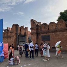 チェンマイ旧市街にはたくさんの門がありますが、このターペー門が最も有名で賑やかな門だと思います。ワット マハーワンでマッサージを受けて気持ち良くなった後に西の方に5分ほど歩くとこのターペー門がありました。ターペー門の周りは交通量が激しいので道を渡るのに苦労しました。