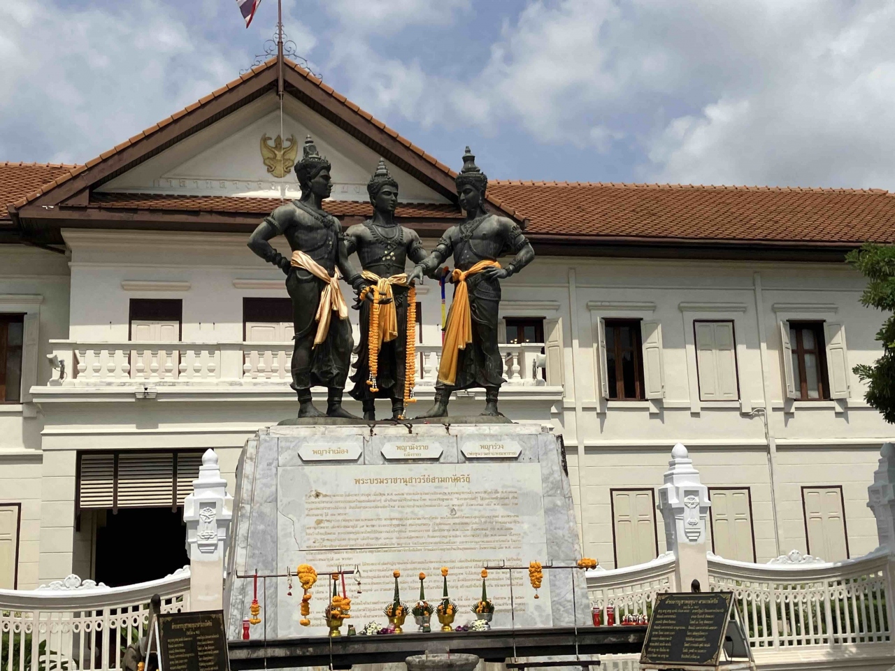 チェンマイにゆかりのある三人の王像が建っている広場です。チェンマイ旧市街のちょうど真ん中あたりです。ワット チェン マンからトゥクトゥクに乗って移動しました。広場では何かイベントの準備がされていました。近くには芸術文化センターがあります。