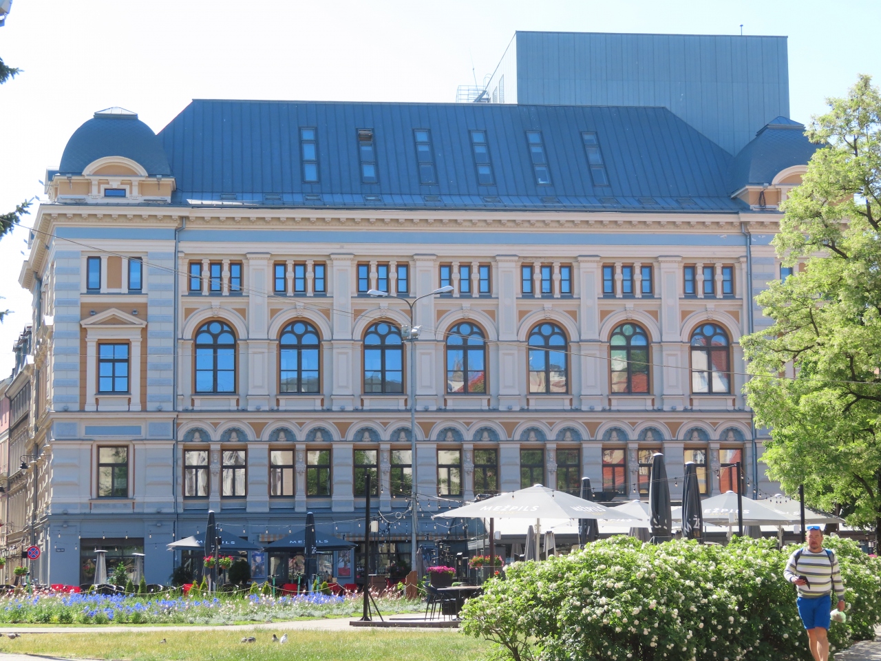 ラトビアの首都リガは、バルト三国最大の都市にふさわしく、大規模な旧市街があり見所満載です。中でも人気の「猫の家」の向かいにこれはあります。一帯は「リーヴ広場」と名のつく市民の憩いの場的なエリアで、飲食店などもたくさんありました。