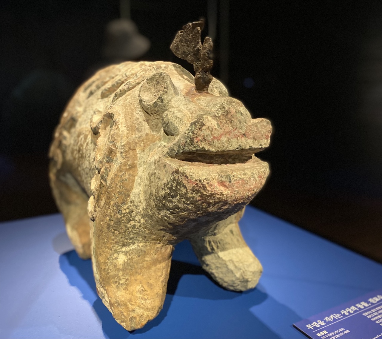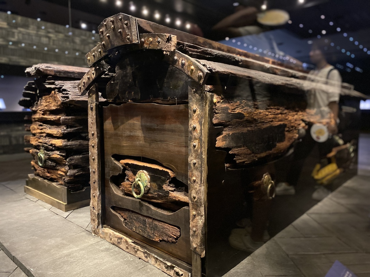1階 熊津百済室では武寧王陵(百済第25代王 武寧王)から出土した遺物が展示され、王と王妃の墓誌が刻まれた二枚の石板「誌石」、それが置かれた「羨道」、王と王妃の遺体が安置された木棺などあり。