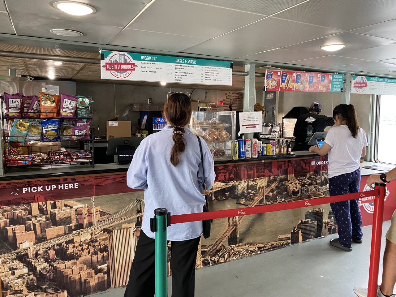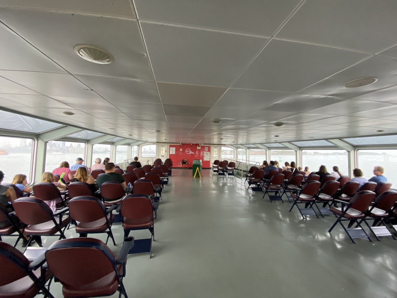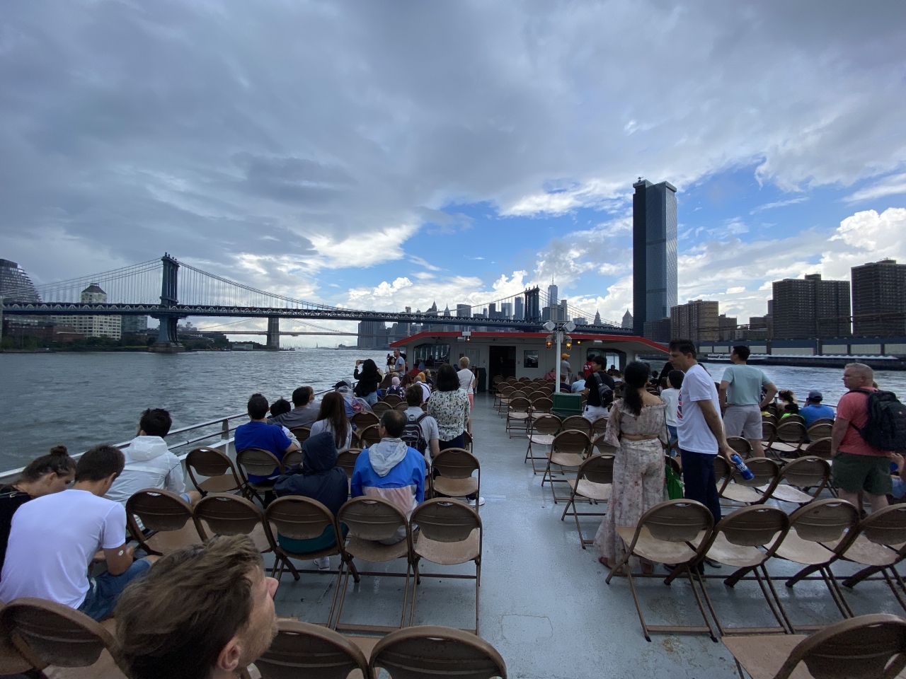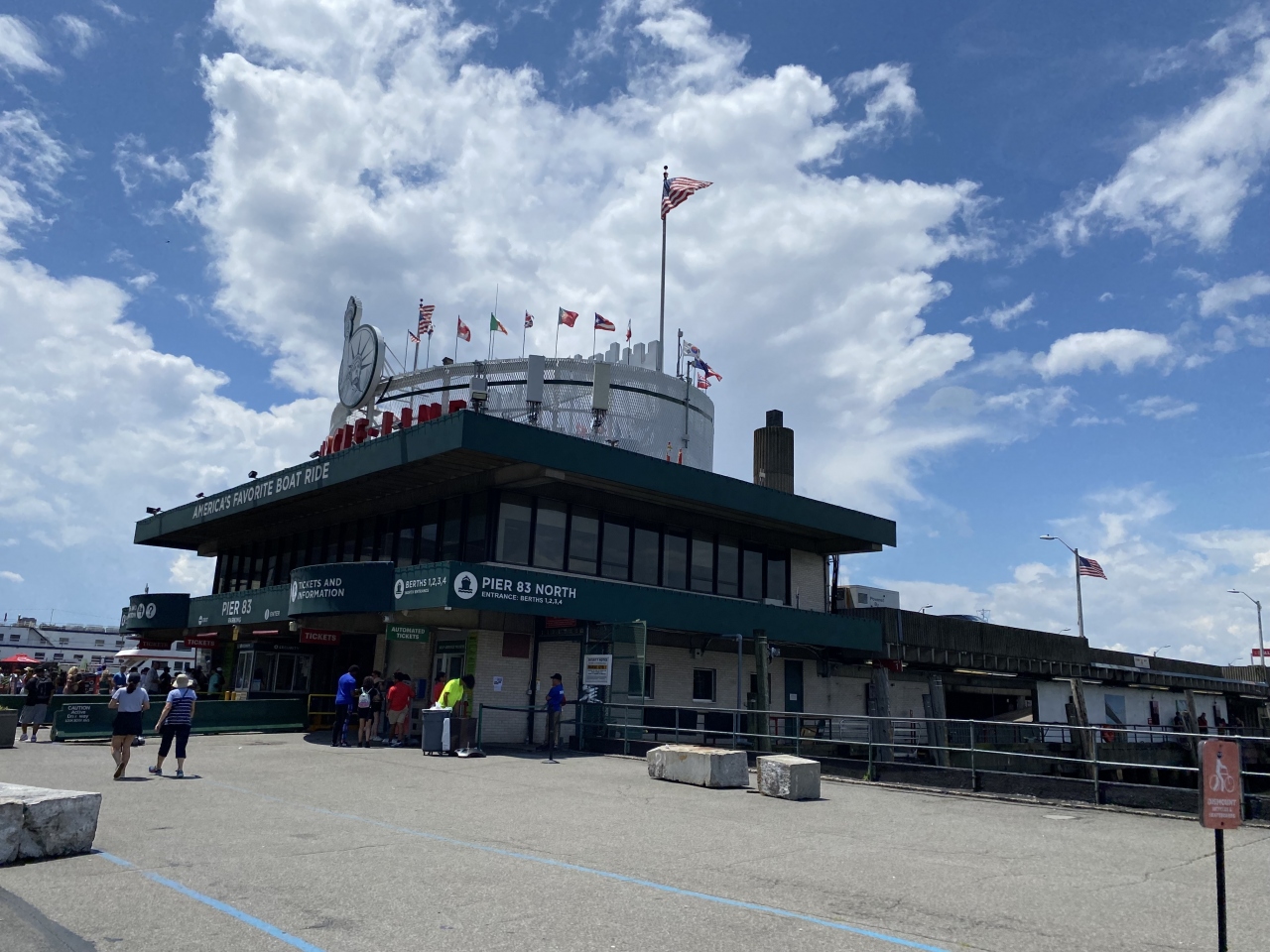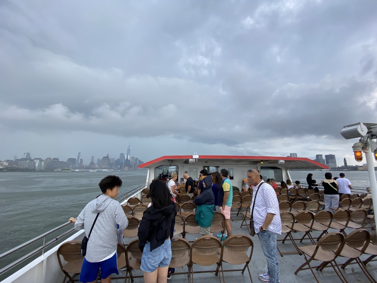 ハドソン川に面する「第83ふ頭(Pier83)」から出発するのが「サークルライン観光クルーズ」、その中でも「ランドマーク(LANDMARKS)」というクルーズをチョイスしました。天気が悪くなったにもかかわらず、かなりお客さんが居ました。ここまで来たからには乗らないと...という方も多かったと思います。売店もあって、ビール/カフェ/スナックとともにゆっくりクルーズを楽しめます。クルーズルートは、ハドソン川を南下してロウワー・マンハッタンに沿ってぐるっと反時計回りに回り、イースト川に入ってブルックリン橋、マンハッタン橋、ウィリアムバーク橋をくぐり、折り返してから南下し「リバティ島」で自由の女神像周辺にしばらく浮かんで(写真タイム)、ハドソン川の埠頭へ戻ります。ちなみにこの埠頭の近辺が、「ハドソン川の奇跡」で知られる、2009年1月15日の午後3時半頃にUSエアウェイズ1549便が着水した場所です。マンハッタンを川と海から眺めたい、自由の女神を海から眺めたい...という方にはうってつけのクルーズです。