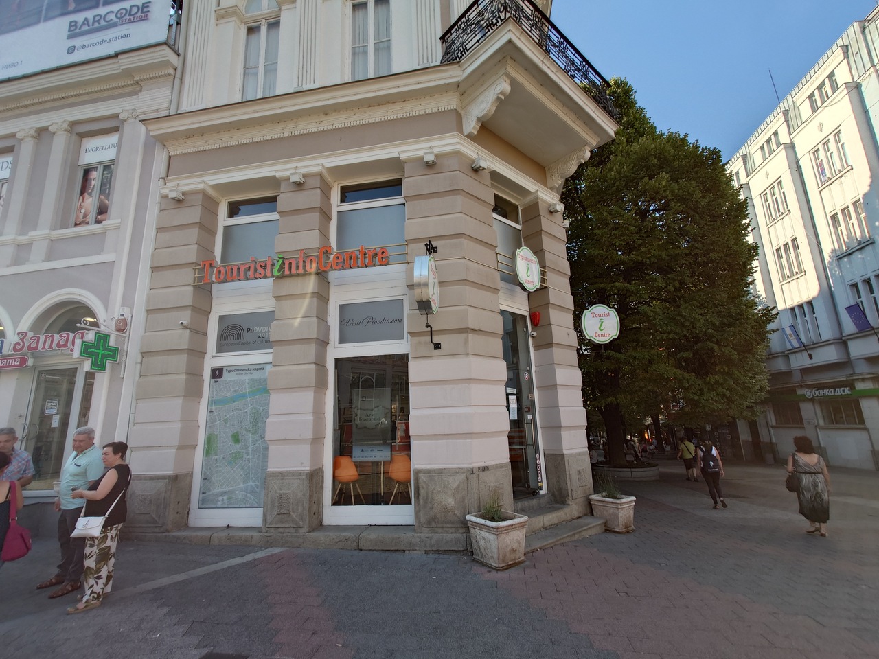 プロブディフの街の中心部にあるジャマヤ・ジャーミヤのすぐ横の広場です。広場というほど広くはないですが、日除けパラソルの下のカフェの席がたくさん出ています。対面向かい側にはプロブディフのツーリストインフォメーションがあります。