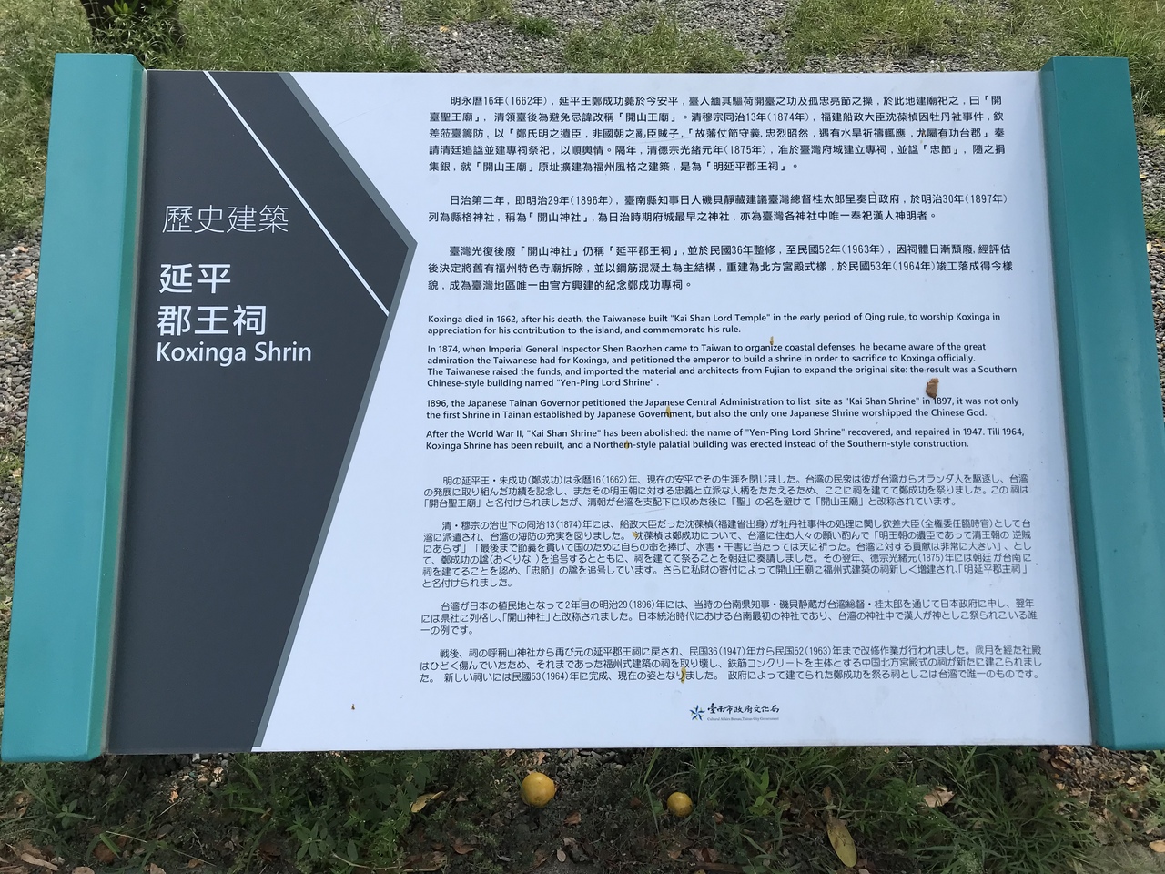 門に書かれた『前無古人』は、今までの過去に(鄭成功のような素晴らしい)人はいなかったという意味だそうです。