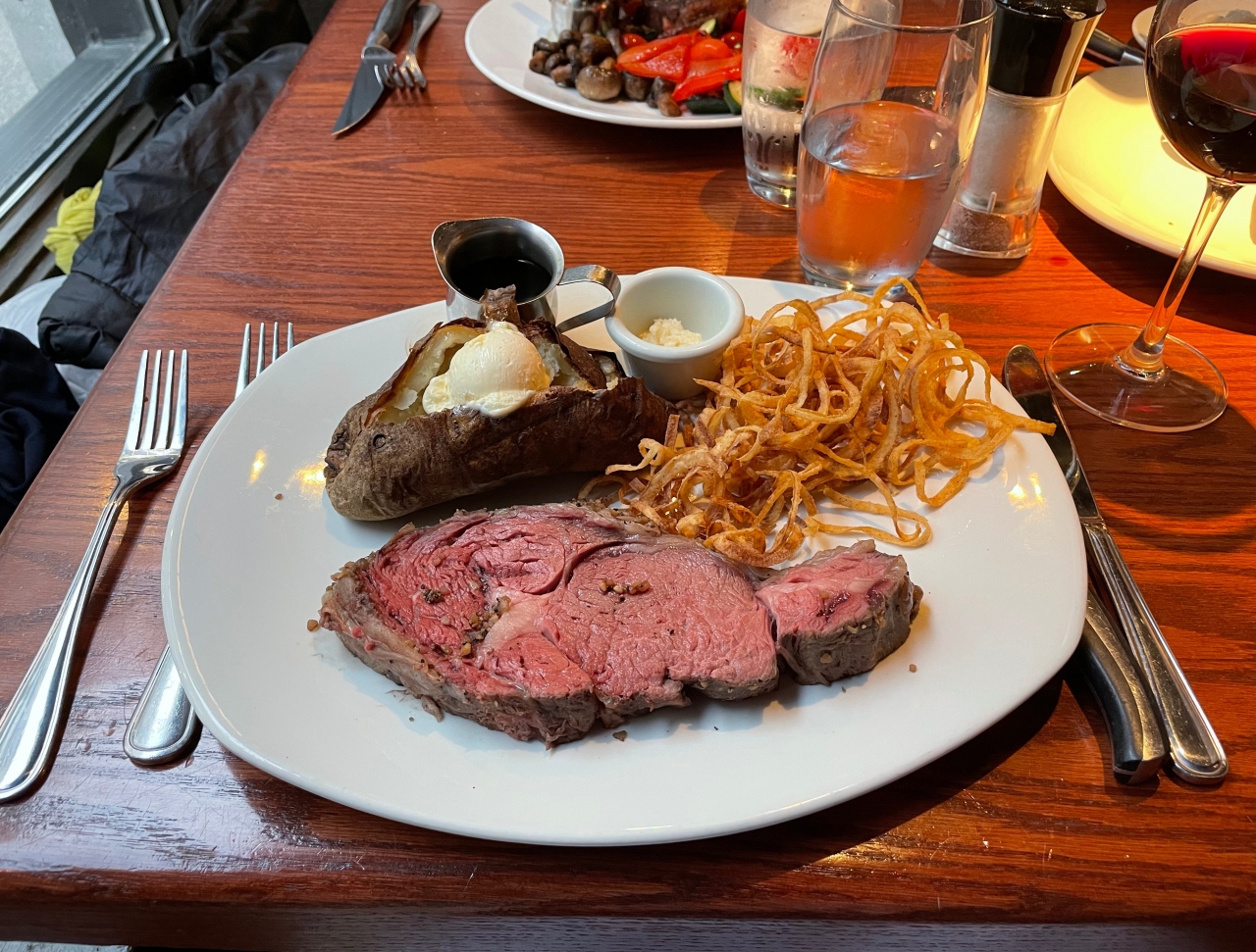 モントリオール中心部のステーキハウス。メニューはオーソドックスだが、その日の都合で提供できない品があったりする。温かい厚切りローストビーフ、ステーキが中心で、この種のステーキハウスとしては丁寧に調理された味わいも適度な柔らかさもある料理。スパイスの関係かアメリカやヨーロッパの風味と微妙に異なる。クミン(?)などエスニック系スパイスが若干効いている気もする。市内観光地区のど真ん中だからサービスなど観光仕様な雰囲気なのは致し方なかろう。