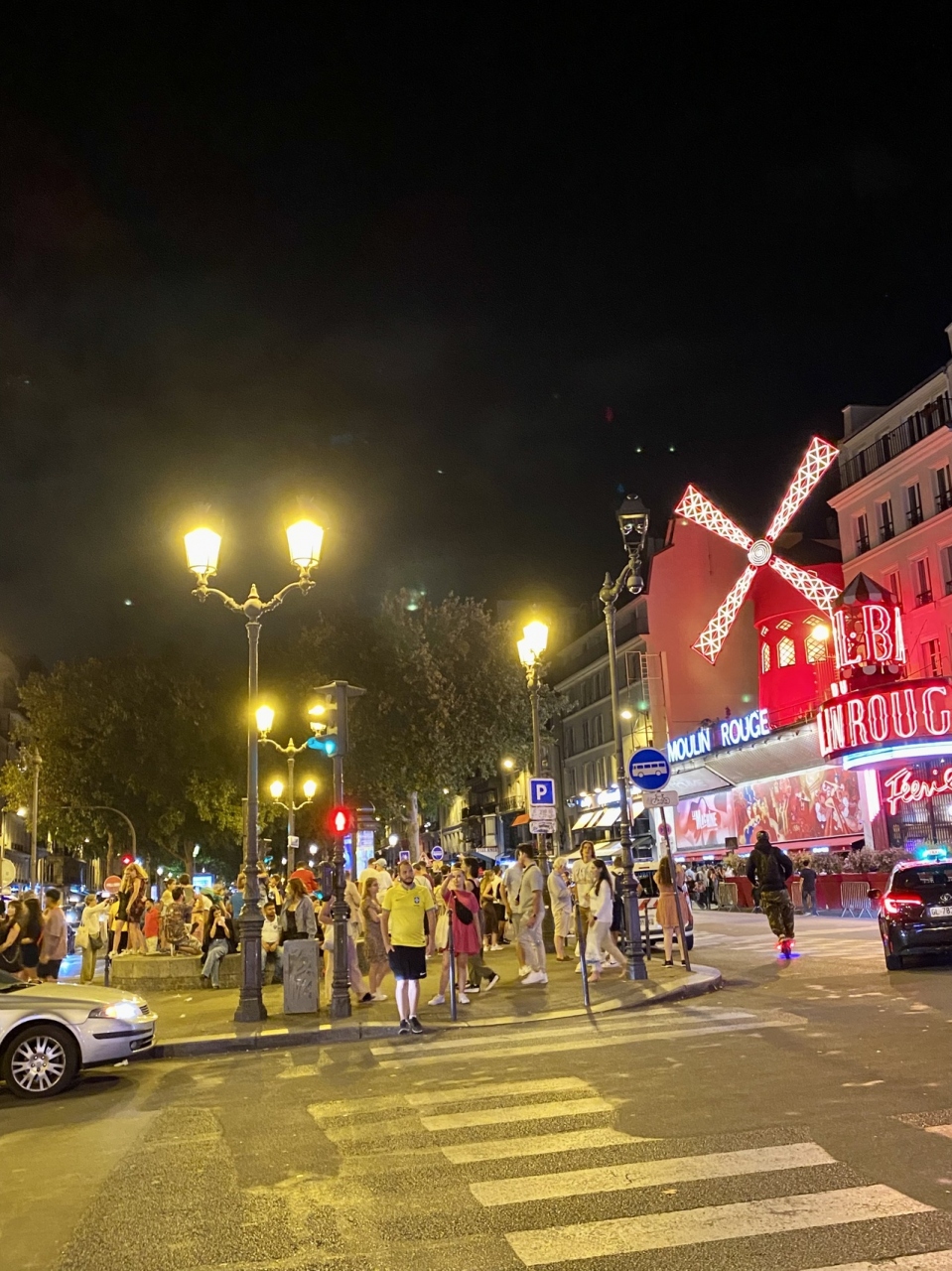 モンマルトルのホテルに宿泊してメトロのブランシュ駅が最寄りだったため、朝から昼、夜と色んな時間帯で前を通りましたが常に観光客が写真を撮っているので治安に不安を感じことなく助かりました。ショーは直前だとずっとソールドアウトで見ることができませんでした。