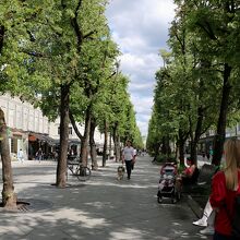 通りの真ん中が並木道になっている面白い造りで、ベンチが置かれているため市民の憩いの場になっていました。