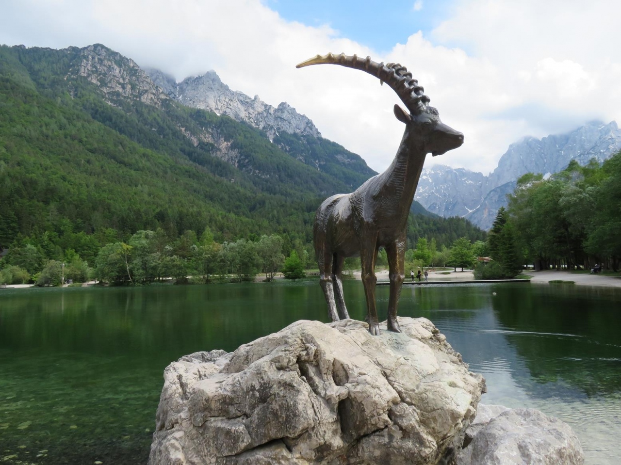 カフェや宿泊施設、アイベックス(大きな角を持つヤギ科の動物)のモニュメントがあって眺めがいいのは湖の北側。