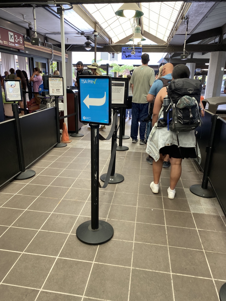 朝便で利用。7時前に空港に到着しましたが、コロナも収束して観光客が戻りつつあるため、朝便の場合はセキュリティチェックの行列ができていることが多いです。並んでから30~45分くらい時間を要することがあります。空港職員によるのかもしれませんが、フライトの時間が近づいている場合でも、優先してくれず容赦なく最後尾に並べと言われ、結局間に合わなかったという話も聞きましたので、時間に余裕をもって空港に到着されることをお勧めします。