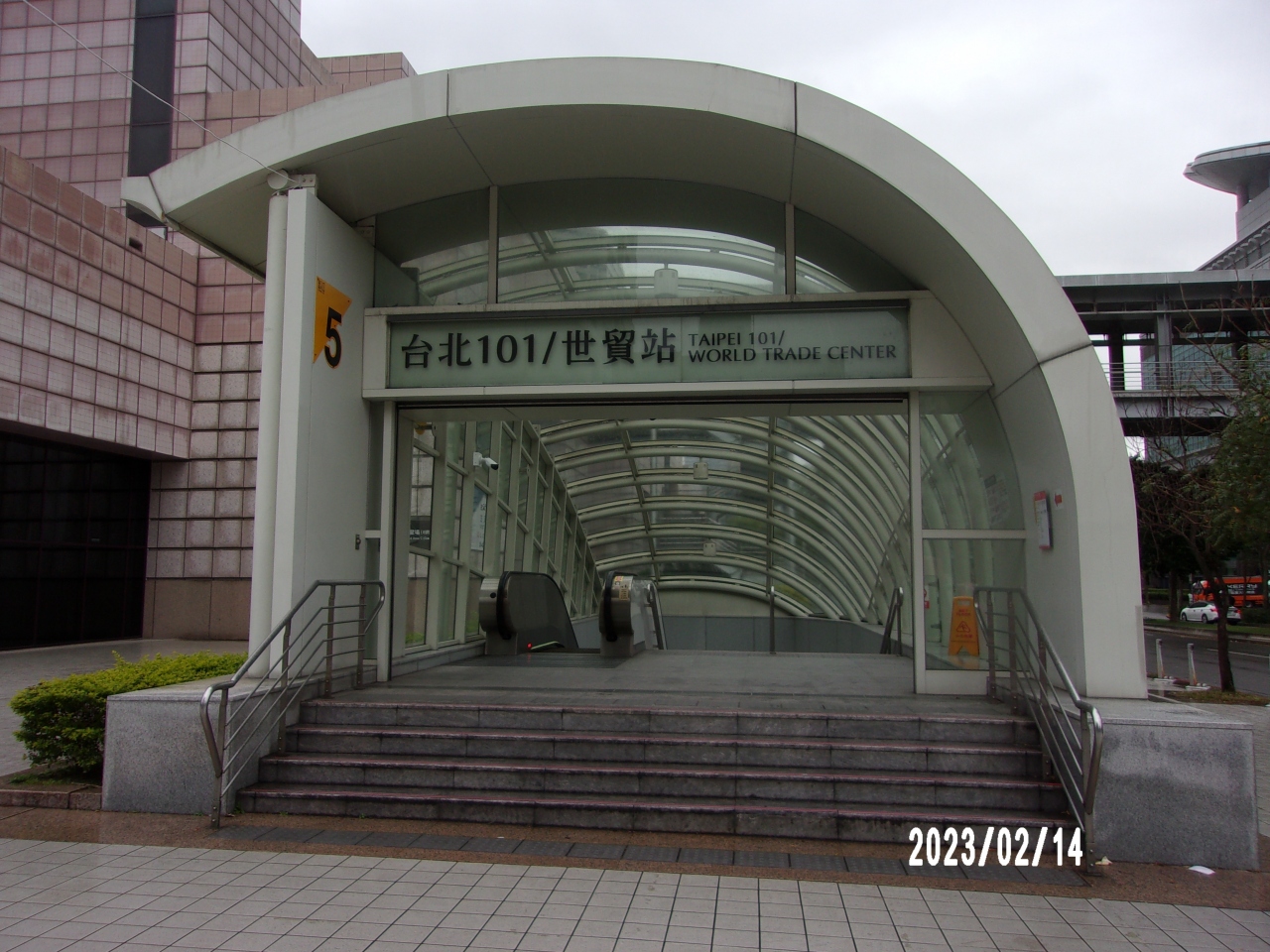 この台北101/世貿駅は地下鉄MRT淡水信義線の駅の一つです。地下鉄台北駅から南に7つ目の駅です。この駅の北側は台北101とその西隣内ある台北世界貿易サンターの建物があります。この駅からは北に市府路を進むと台北市政府があります。駅の北側は高層ビルが並び整備されたエリアです。