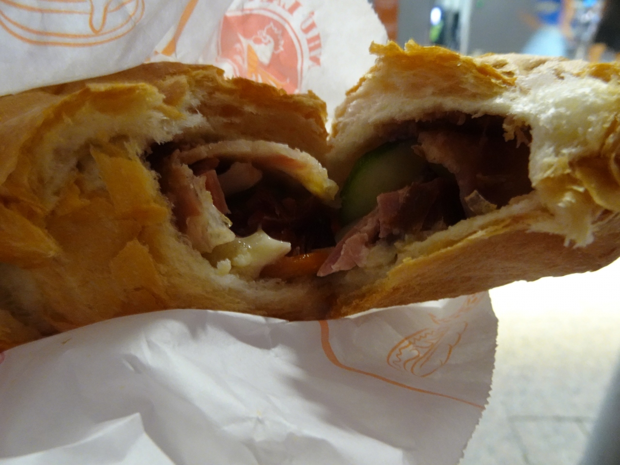 バインミーはローストポークや野菜など具だくさんでおいしいです。もちろんフランスパンも、それだけで食べても十分おいしい本格的なものでした。VND30,000でこのおいしさはすごく嬉しい!ひっきりなしにお客さんが来ているのも当然だと思いました。