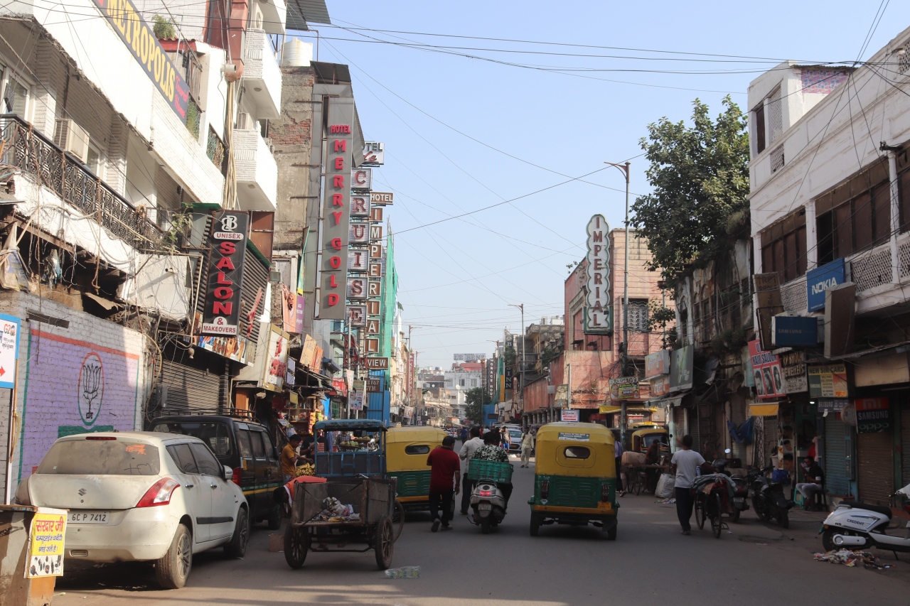 ニューデリー駅前から続く旅人通りです。通り沿いには安いホテルやゲストハウス、飲食店が並びます。かつては外国人バックパッカーで賑わったのでしょうが、今はそれほどでもありません。ひっきりなしに通るオートリクシャーがうっとおしいです。