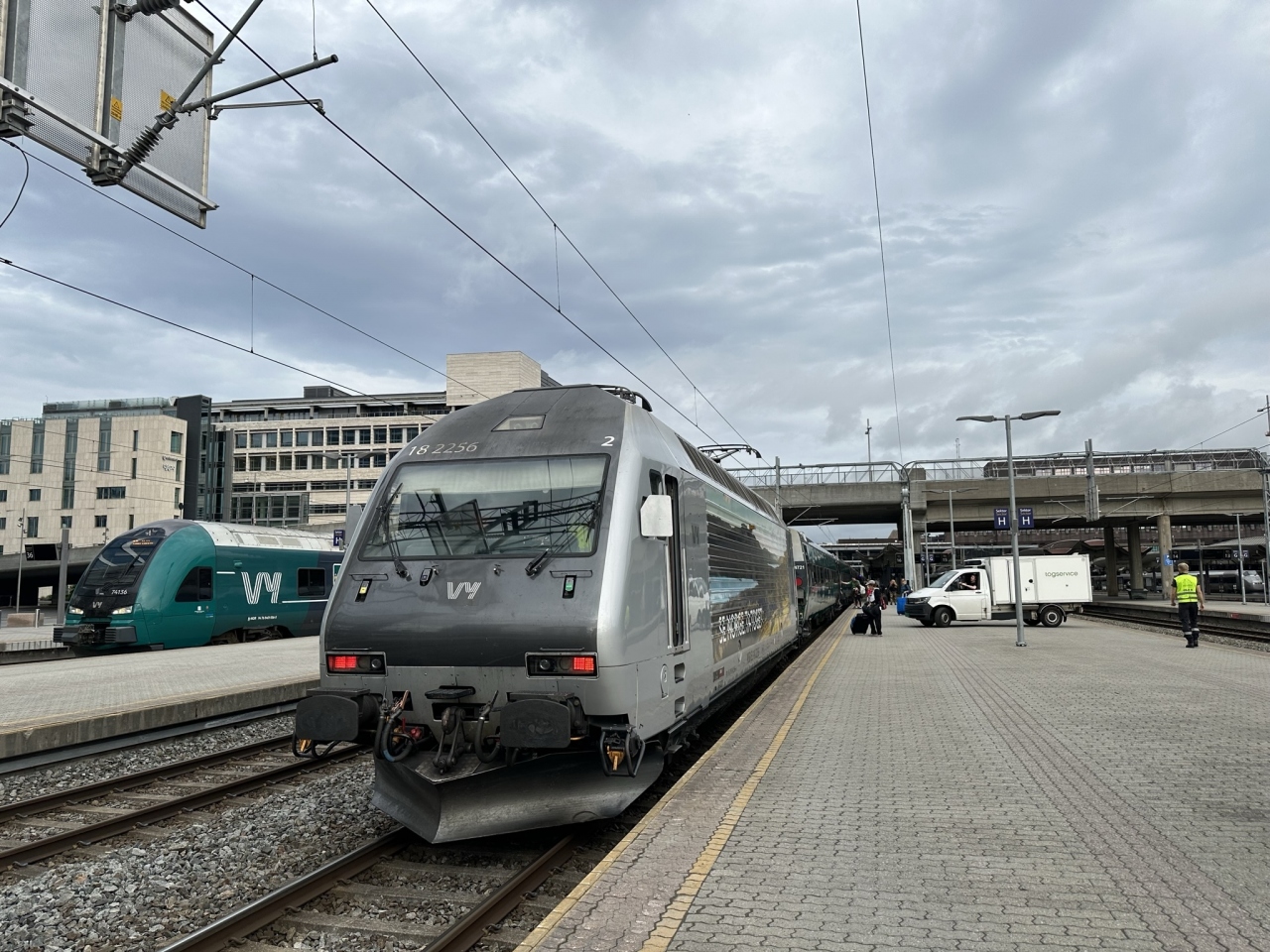 ノルウェー鉄道の列車のホームがずらりと並んでいるオスロ中央駅。ここからノルウェーを横断してベルゲンとの間を結んでいるベルゲン急行は、約500キロを6時間半で結んでおり、森や湖の景色を眺めながらの鉄道旅を楽しめます。