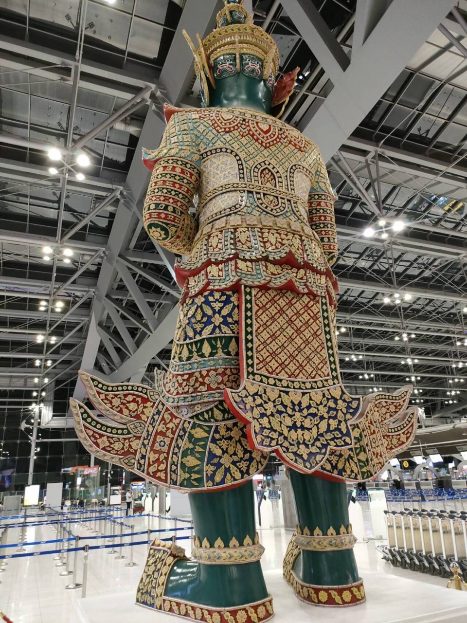 空港のなかも、タイらしい装飾であふれており、ワットプラケオでみたようなヤックの巨大な像があったりだとか、出国する直前までタイを感じることができました。まさにワットプラケオにあったものと同じようなものだったのでびっくり!
