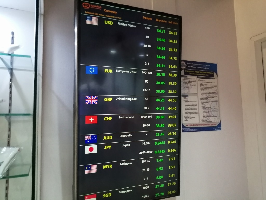 BTSアソーク駅の構内にスーパーリッチはありますが、すぐそばのMRTスクンビット駅の構内のメトロモール内にもスーパーリッチがありました。両替レートはどちらの店も同じでしたが、こちらの店は空いていて、すぐに両替えすることができました。
