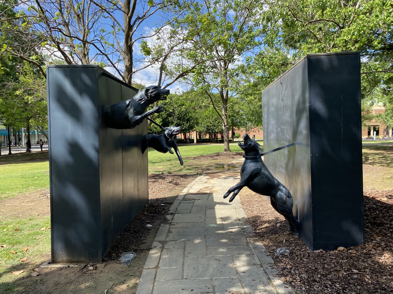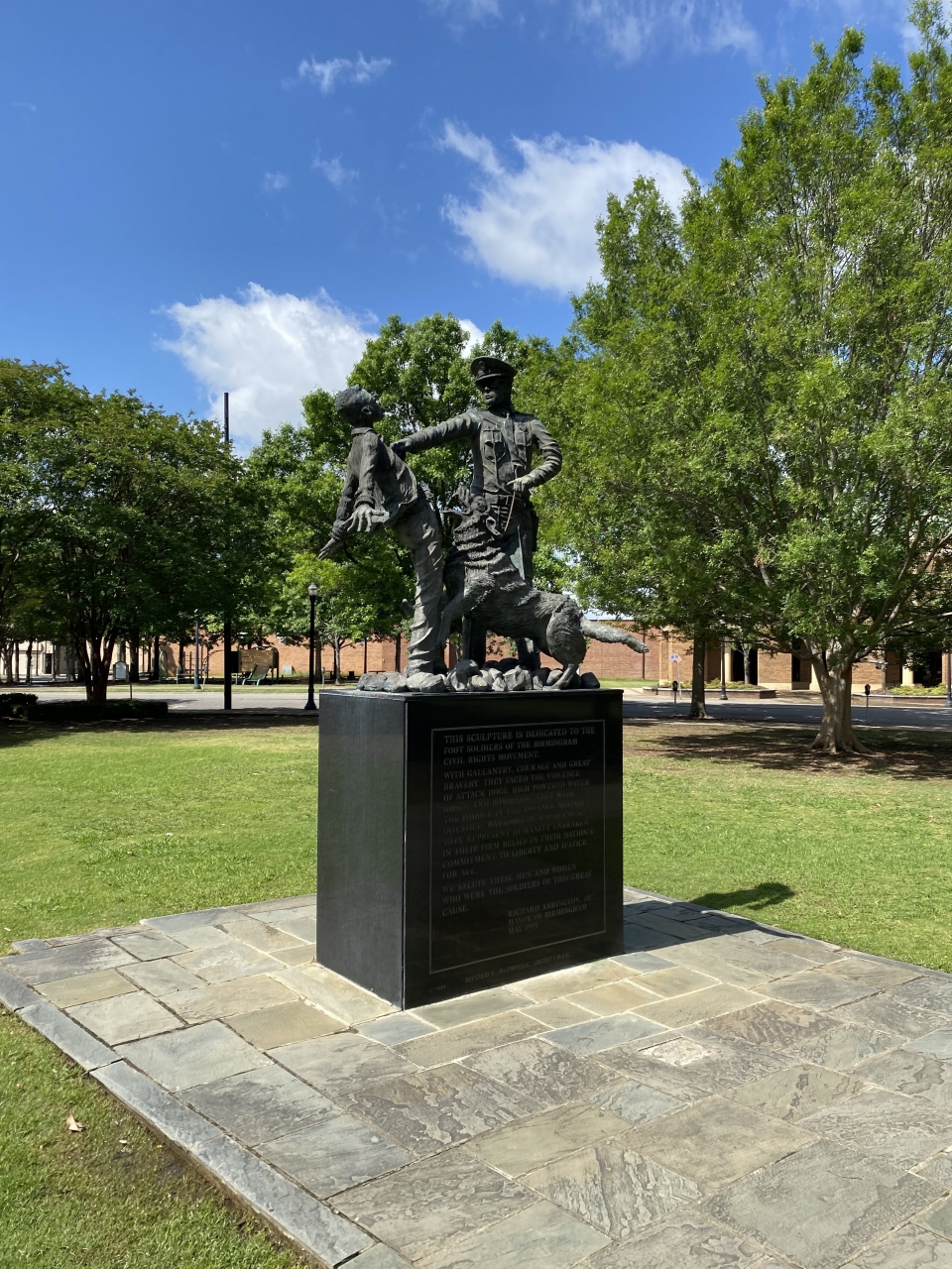 1950年代には、バーミンガムも他のアメリカ南部の町と同様に、市の人口の7割以上を占める黒人への人種差別が横行していました。当時キング牧師が「ここはおそらく米国で最も差別がひどい場所」とまで表現。そして、公民権運動の主たる舞台となったこの公園では、デモ隊を逮捕するために警察によって警察犬がけしかけられ、消防車による放水が行われたとのこと。