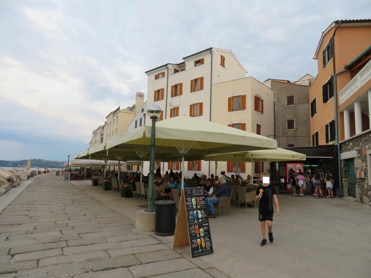 この通り沿いのお店は、ピラン湾側が観光客も多い洒落た雰囲気、トリエステ湾側は一転して地元のお客さんが多くて気さくな感じ。