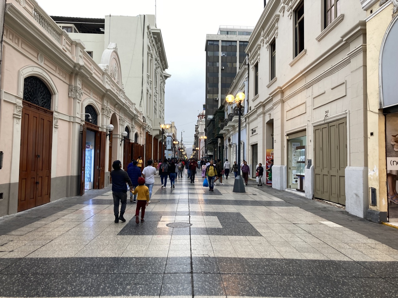 アルマス広場とサンマルティン広場を結ぶメイン歩道。平日昼でも思ったより人が多くいました。カフェ、スタバ、KFCなどお店もびっしり乱立。リマ観光では必ず歩く場所だと思います。一方、スリも多くいるようです。