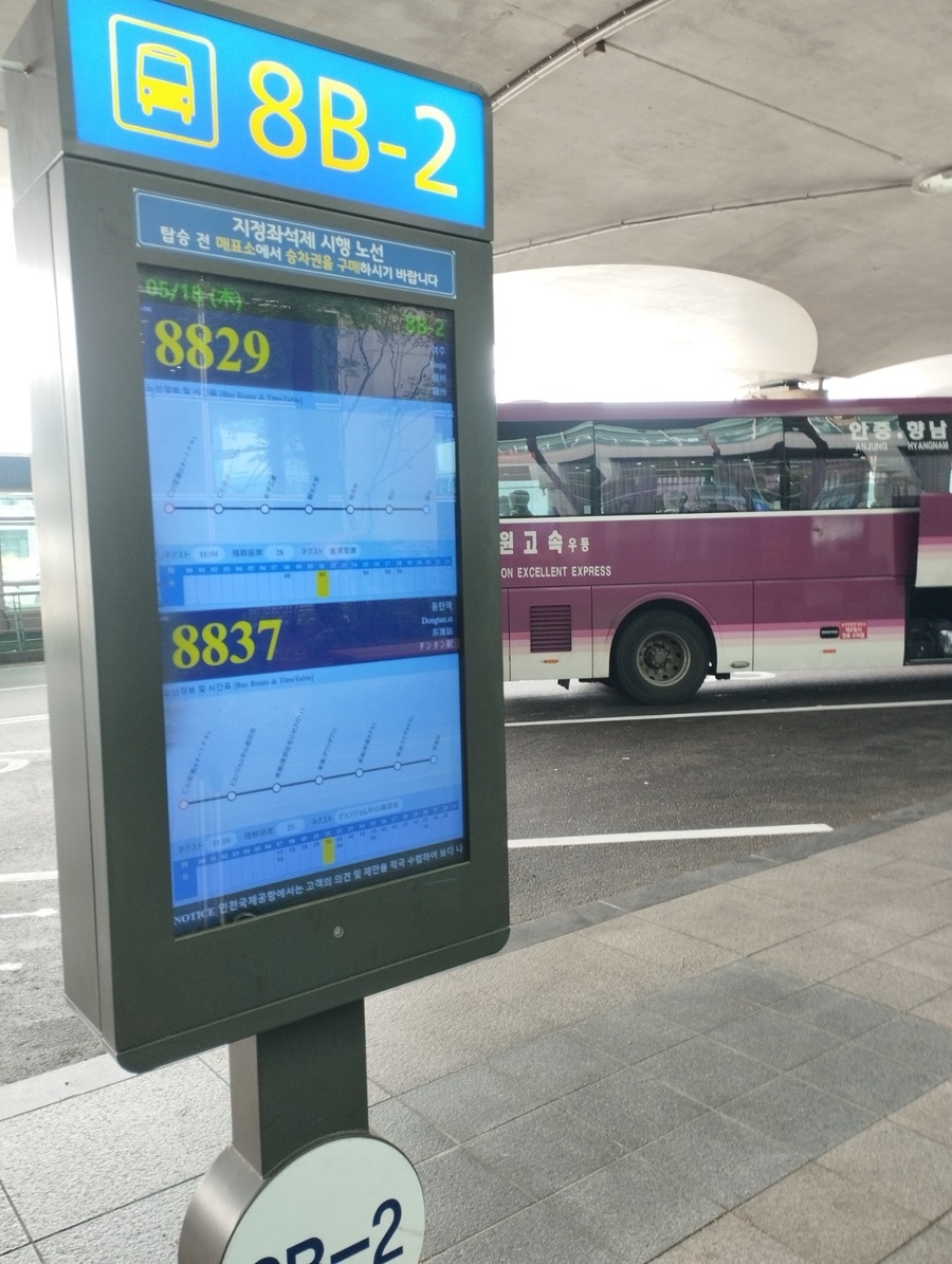 仁川空港の到着ロビー外からバスが出ています。10:50発のリムジンバス 、6,400韓国ウオン(約704円、約40分で金浦空港へ着きました。
